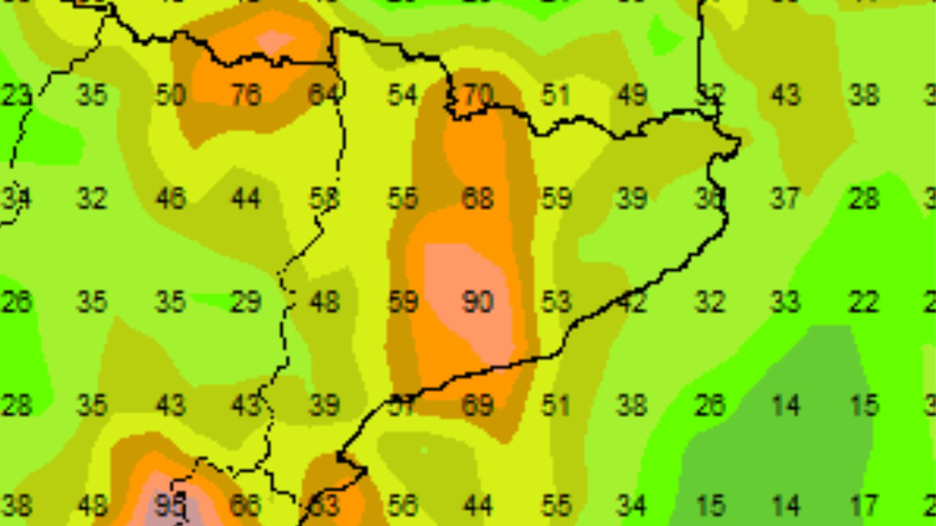 Protecció Civil es demana extremar les precaucions i evitar apropar-se a rieres, rierols o zones fàcilment inundables, ja que es poden acumular més de 60 litres al final de la jornada en alguns punts.
