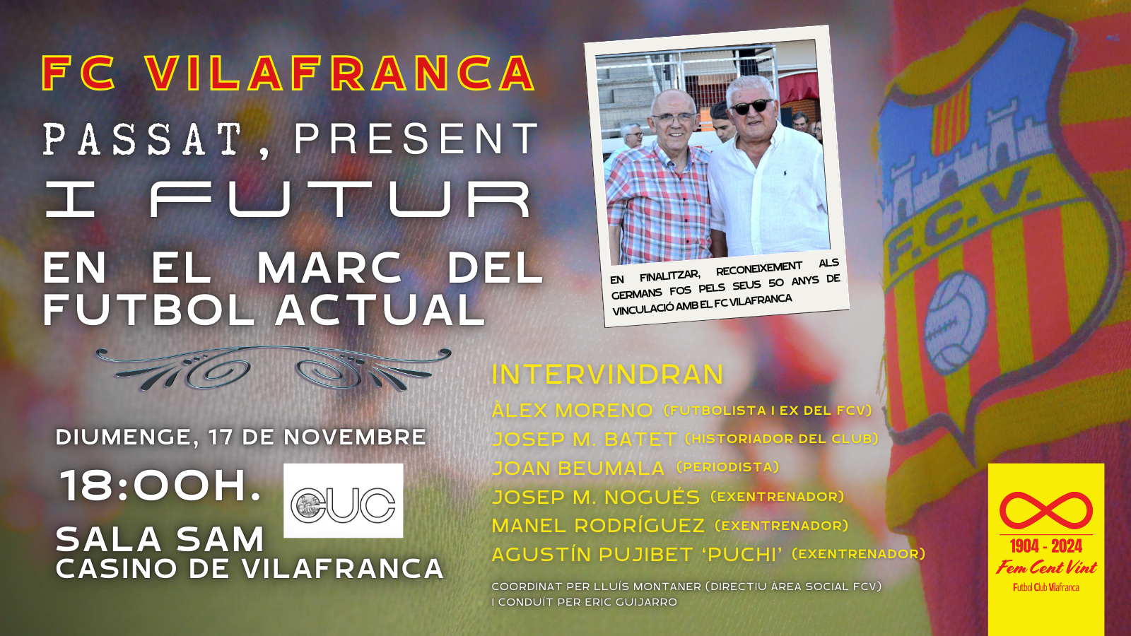 L’acte es tancarà amb un homenatge als germans Paco i Pepe Fos, amb motiu dels seus 50 anys de vinculació amb el Futbol Club Vilafranca.
