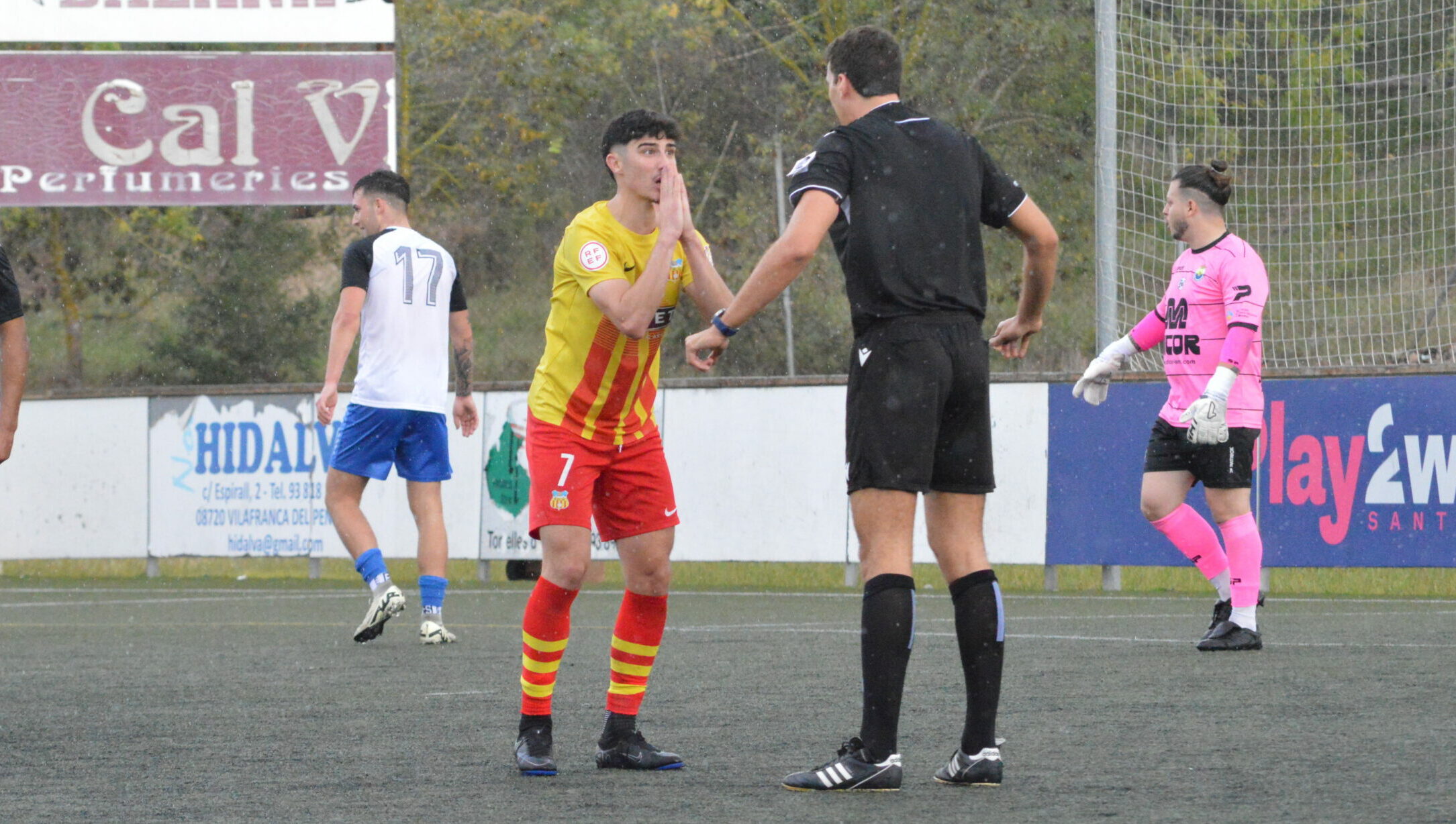 Pel que fa al partit, poques coses salvables per un Vilafranca que va acabar caient per 0-3 davant el San Mauro, sota una pluja incessant. Al primer acte el Vilafranca es va salvar, i fins i tot va poder colpejar primer: al 46 l’equip es quedava amb un pam de nassos, pel gol anul·lat a Pau Caresia. La línier assenyalava fora de joc de l’autor de l’assistència, Abde Afazaz.