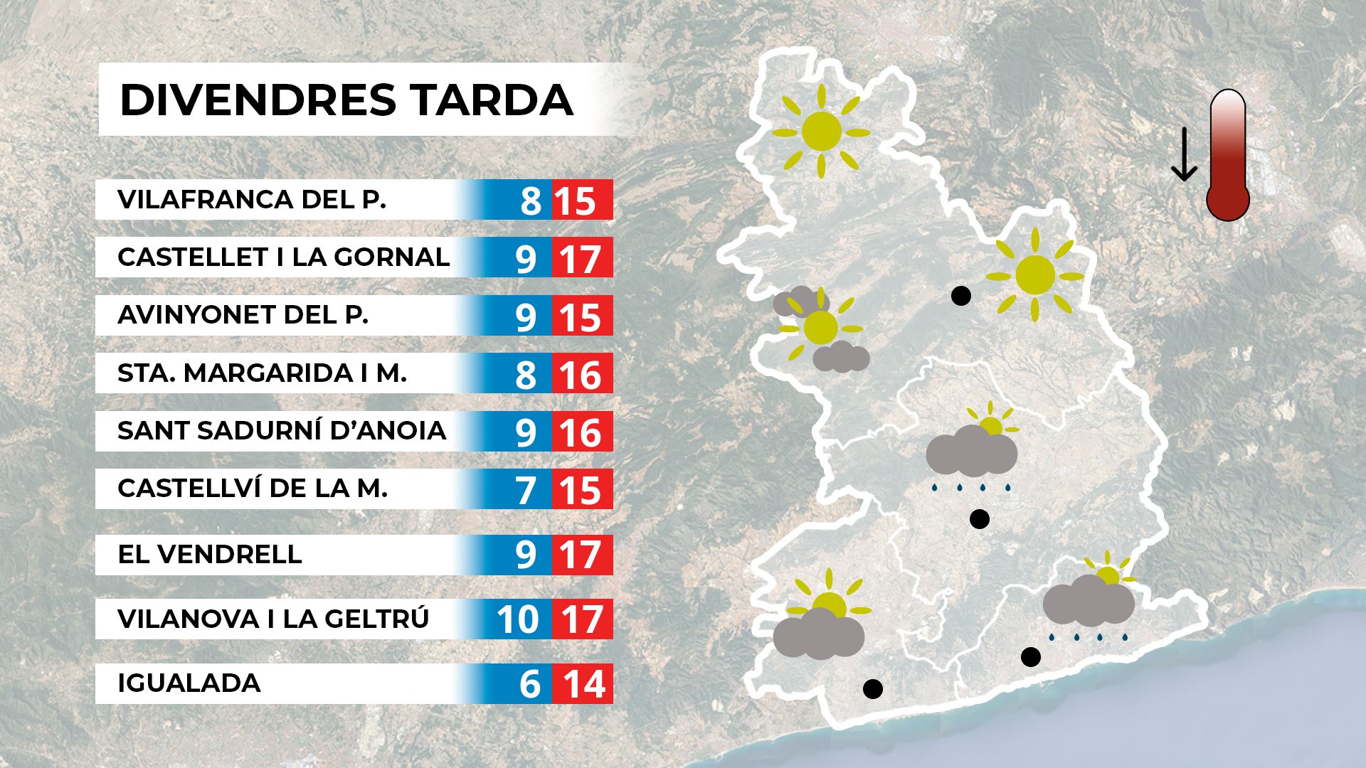 La inestabilitat es mantindrà fins dissabte al matí, quan encara es podria registrar alguna gotellada puntual i dispersa. El cel es mantindrà força ennuvolat durant bona part de la jornada, amb un ambient fresc al matí.