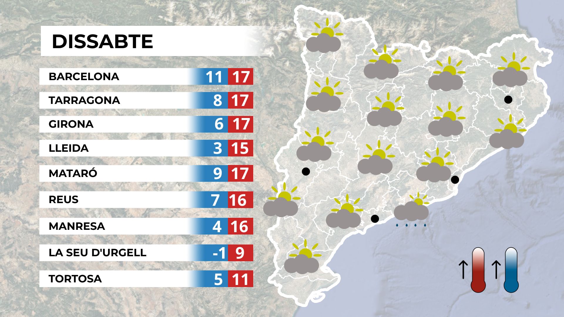Dissabte: gotes a primera hora i temperatures més suaus al migdia