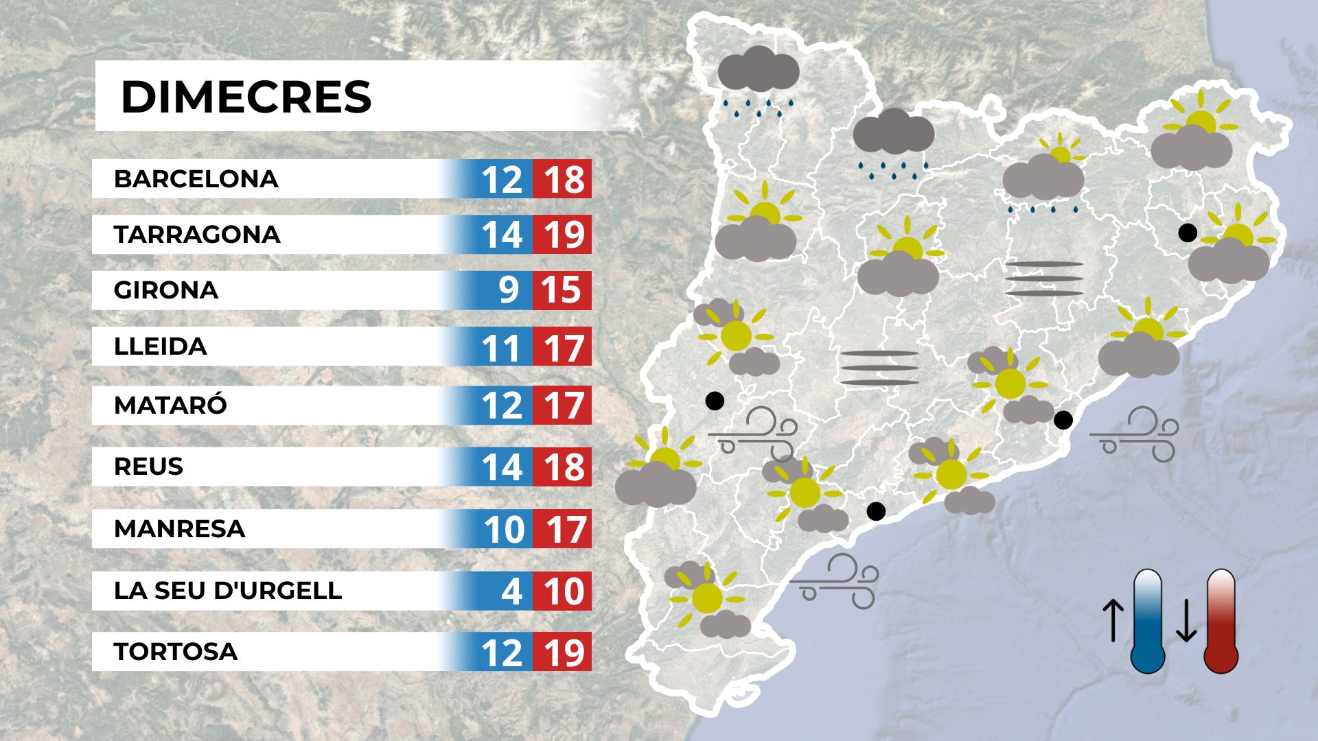 Mapa de previsió general de Catalunya per a dimecres.