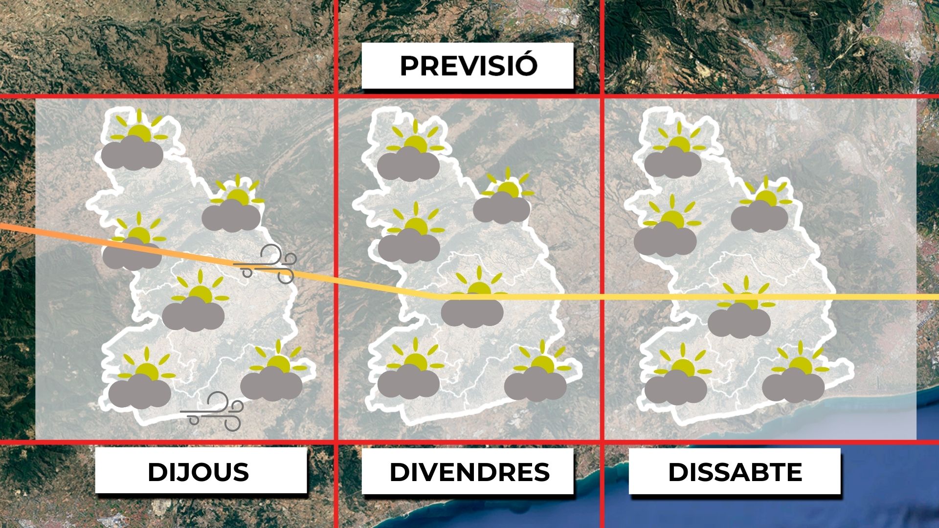 Per aquest motiu, el Servei Meteorològic de Catalunya ha activat avisos per perill moderat a causa de les fortes ratxes de vent. A la tarda, el vent començarà a afluixar, amb un ambient més suau i màximes al voltant dels 20 graus. A més, el sol dominarà bona part del dia.