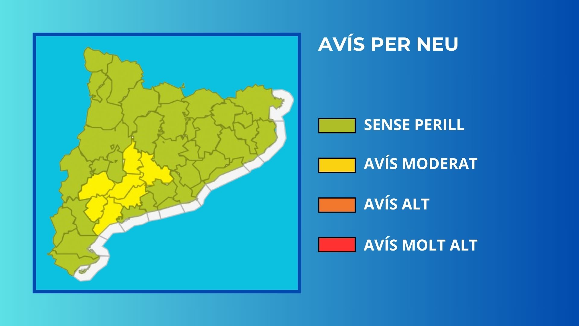 El Servei Meteorològic de Catalunya ha emès avisos de risc moderat per nevades a cotes baixes, especialment a les comarques de l’Anoia, l’Alt i Baix Camp, el Priorat, la Segarra, les Garrigues i la Conca de Barberà.