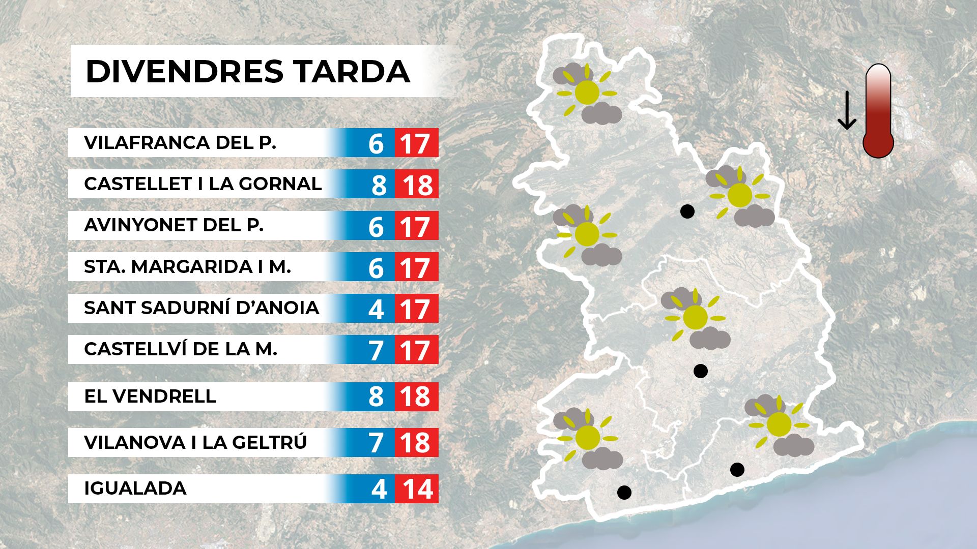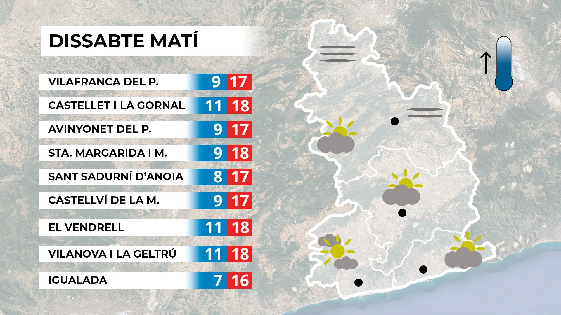 Aquest cap de setmana arriba sense gaire novetats meteorològiques. Aquest divendres ha començat amb un ambient poc fred per l’època i un cel força estable. Durant el matí, els núvols seran més destacats, però desapareixeran al migdia, deixant una tarda molt més assolellada i agradable. Tot i una lleugera baixada de les temperatures màximes, els valors continuaran molt per sobre de la mitjana, superant els 18 graus en alguns punts del Penedès durant les hores centrals del dia. Aquesta situació es deu al vent de ponent i de mestral, que ha impulsat els termòmetres cap amunt.