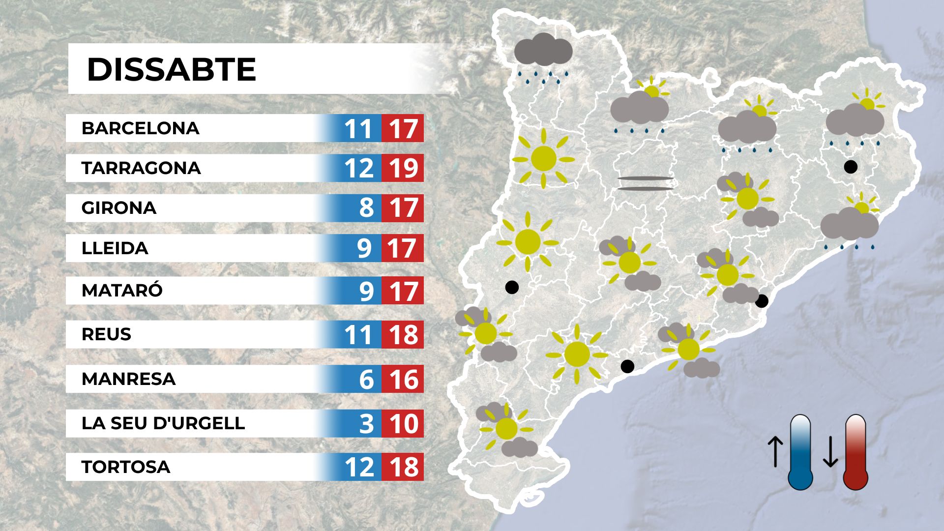 Al nord del país, però, el front serà més actiu. A l’Aran i al Pallars, especialment, podrien caure precipitacions que al matí s’estendran a altres punts del Pirineu, Prepirineu i comarques gironines. La cota de neu es mantindrà molt alta, al voltant dels 1800 metres. A la resta del territori, el matí serà força ennuvolat fins al migdia, moment en què el sol guanyarà protagonisme. A més, el vent de ponent es mantindrà durant tota la jornada, impulsant les temperatures fins als 20 graus en diversos indrets.