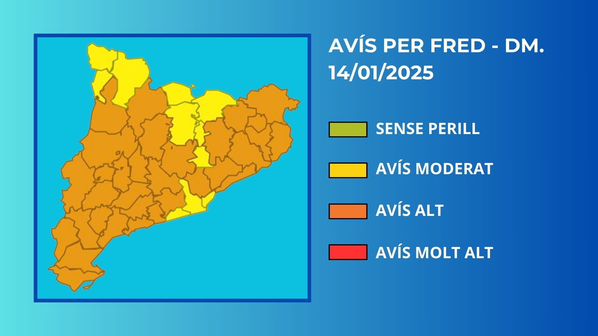 Mapa d’avís per fred per a dimecres. FONT: Meteocat.
