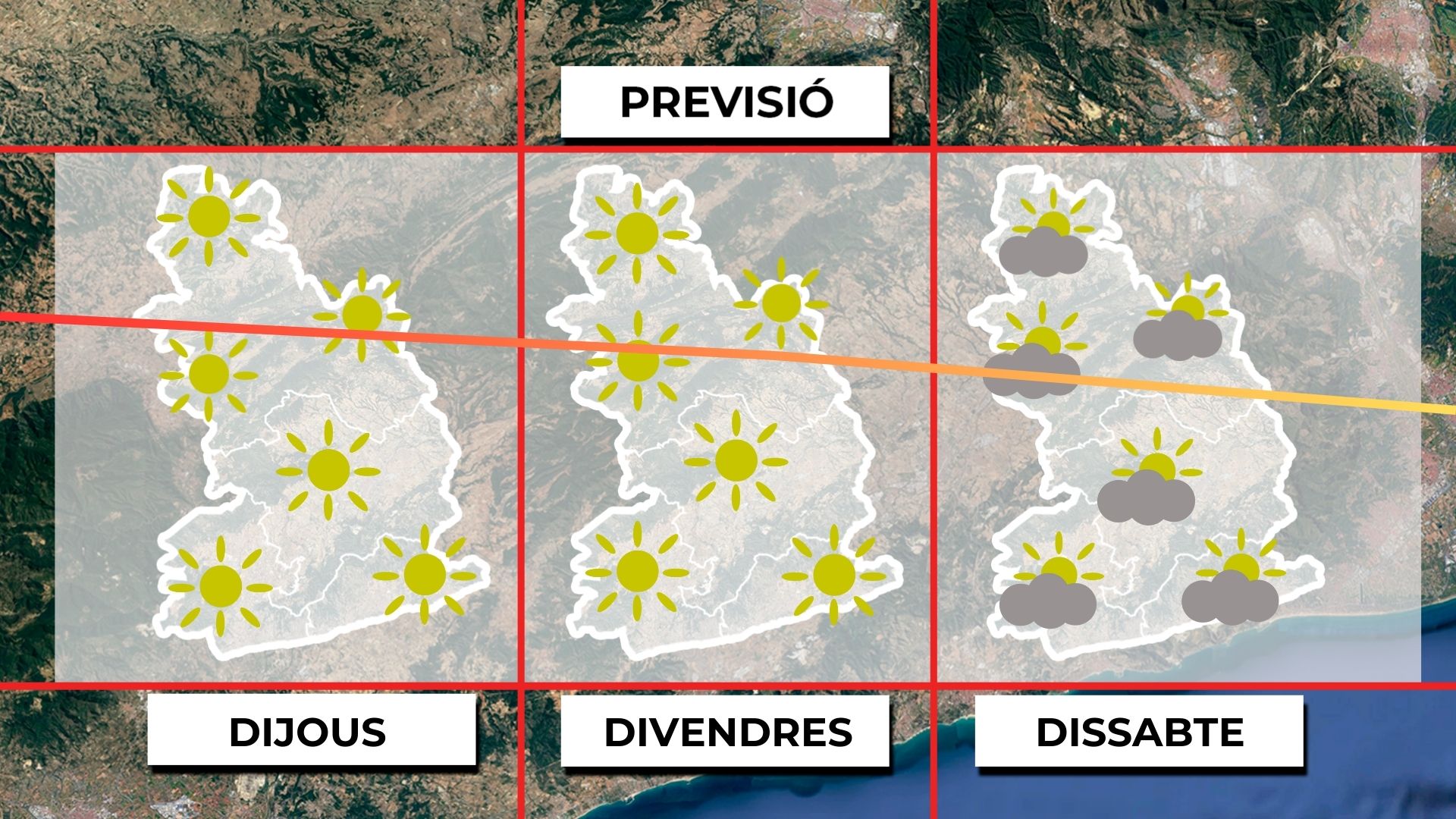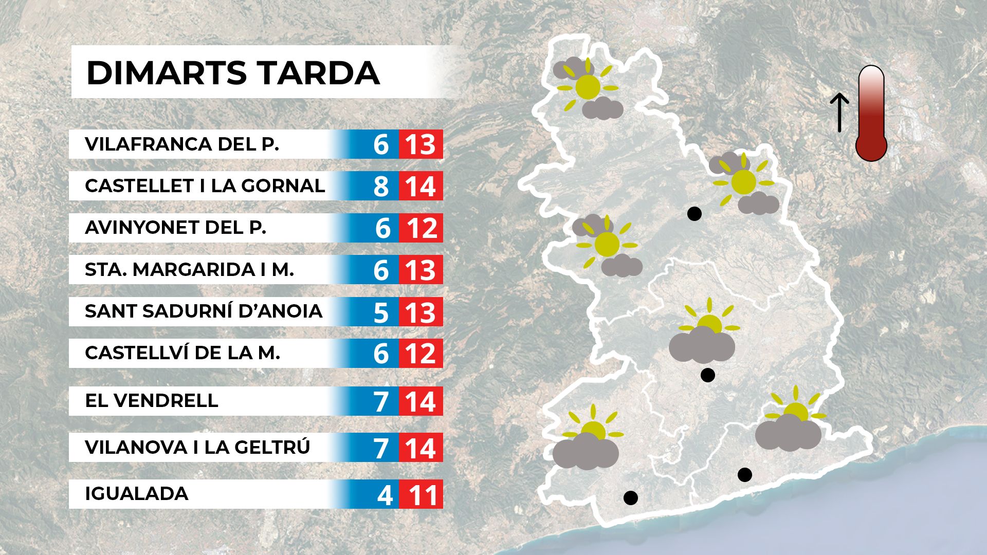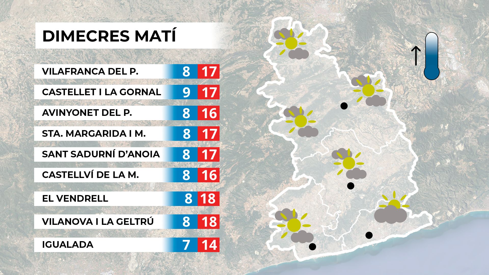 Dimarts assolellat amb temperatures suaus; dimecres, més núvols i petites oscil·lacions tèrmiques sense grans canvis.