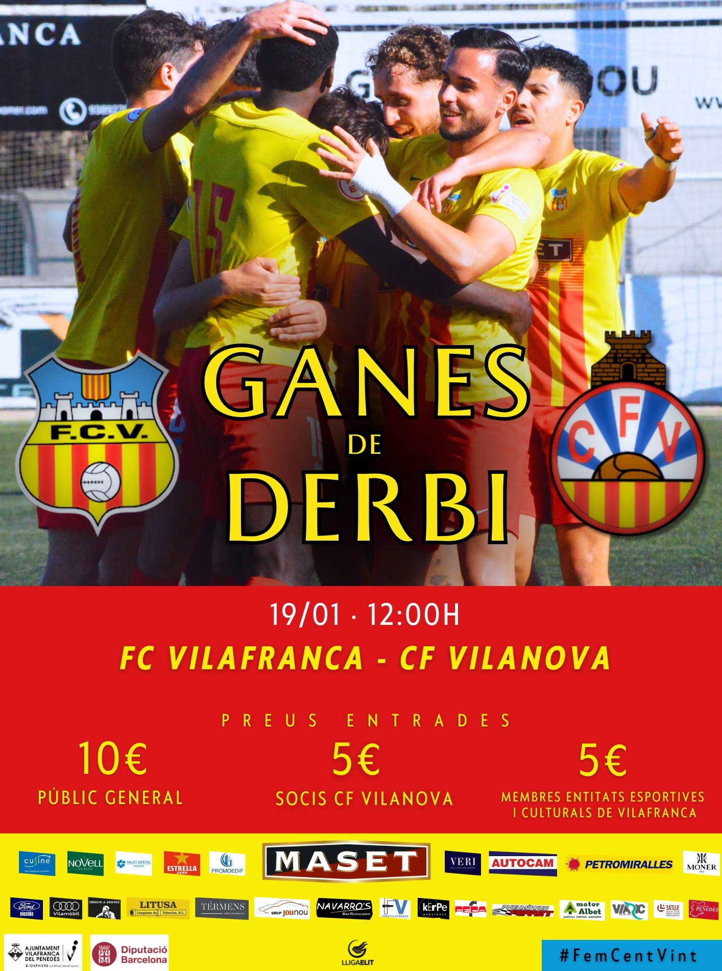 Les entrades generals tindran un preu de 10 euros, i amb motiu del derbi es llença una promoció especial d’entrades a 5 euros per a tots aquells i aquelles que siguin membres d’entitats esportives i culturals de la Vila.