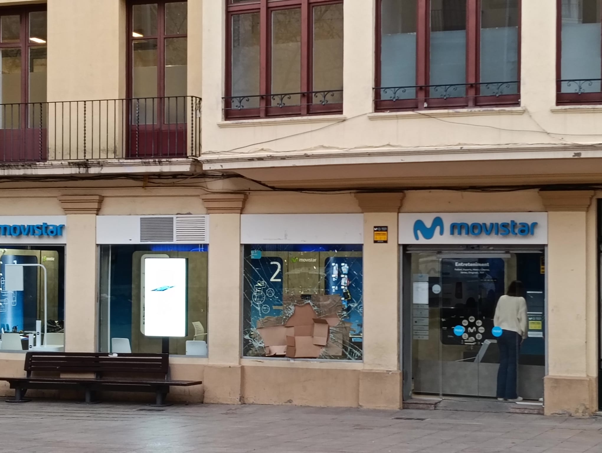 Entren a la botiga Movistar trencant la vidriera i intenten accedir també a Vodafone
