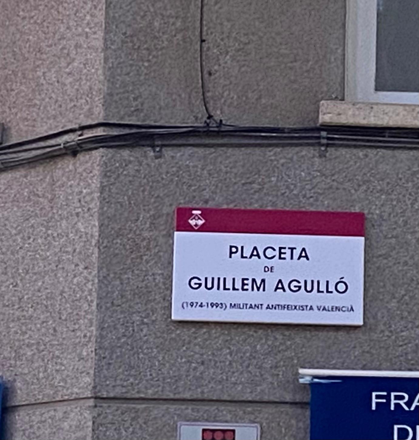Guillem Agulló i Salvador era un jove valencià de 19 anys, militant en moviments independentistes dʼesquerres, que van assassinar clavant-li un ganivet al cor un grup de militants dʼextrema dreta. Lʼany 2008 la CUP va presentar al Ple municipal una moció perquè Guillem Agulló tingués un espai a la Vila, moció aprovada (amb lʼabstenció del PSC i el vot en contra del PP) però que mai sʼhavia realitzat. Per aquest motiu des de la CUP sʼha anat reclamant, i després de disset anys aquesta setmana sʼha posat la placa a la placeta Guillem Agulló, al barri del Poble Nou. La CUP ha anunciat que en els propers mesos es farà la inauguració dʼaquesta nova plaça, així com l’homenatge que es mereix la figura de Guillem Agulló.