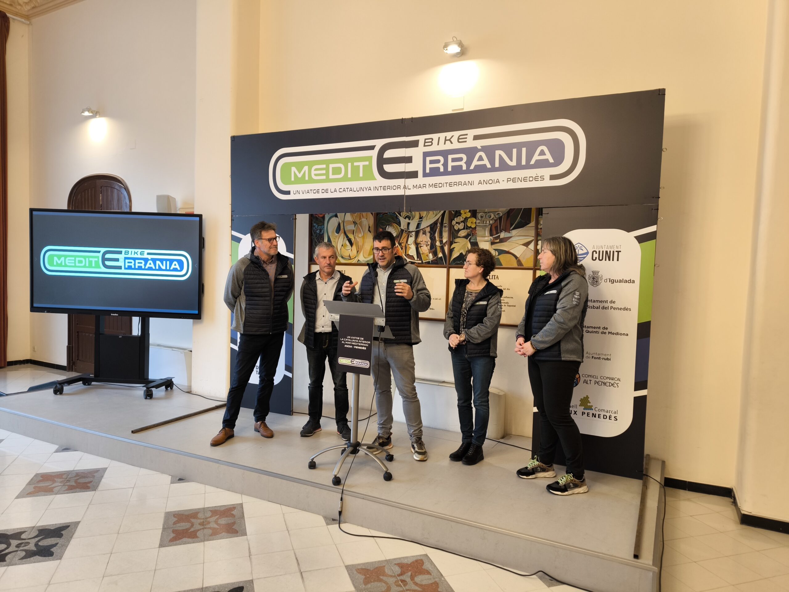 L’E-bike Mediterrània es va presentar a finals de la setmana passada al Consell Comarcal de l’Alt Penedès, una de les institucions organitzadores juntament amb els ajuntaments de Cunit, Igualada i la Bisbal del Penedès; i la col·laboració de l’Ajuntament de Sant Quintí, el Consell Comarcal del Baix Penedès, l’Ajuntament de Guardiola de Font-Rubí, Penedès Turisme, Igualada Turisme, Anoia Turisme, Diputació de Tarragona i la Diputació de Barcelona.