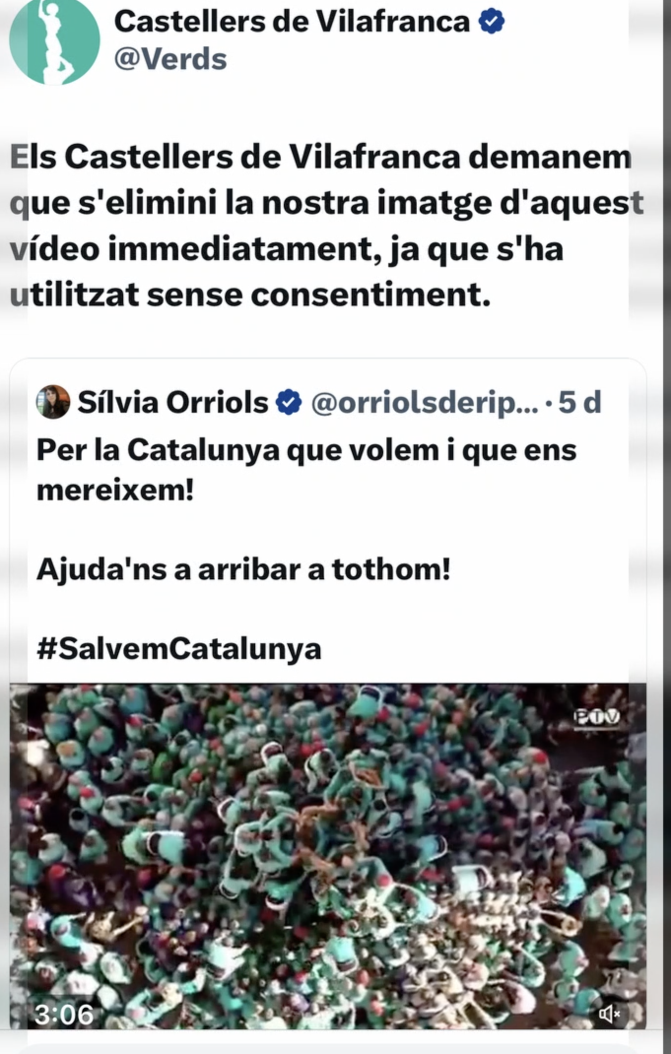 Els Castellers de Vilafranca demanen retirar imatges seves d’un vídeo d’Aliança Catalana
