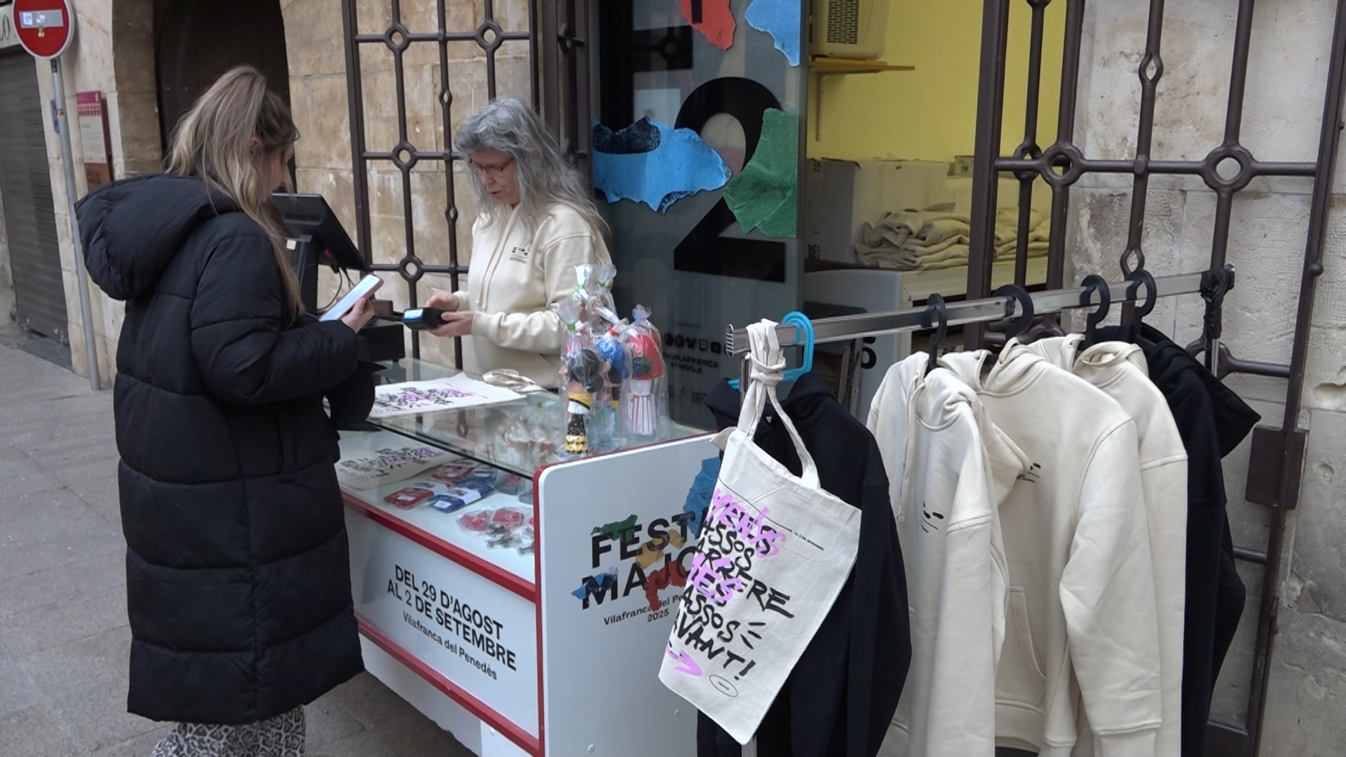 Els administradors de la Festa Major de Vilafranca van obrir dissabte de nou la seva paradeta, on venen el marxandatge de la més típica, centrat sobretot en el presentat fins ara com ara mitjons, bosses tote bag i dessuadores. Aquestes últimes són tot un èxit.