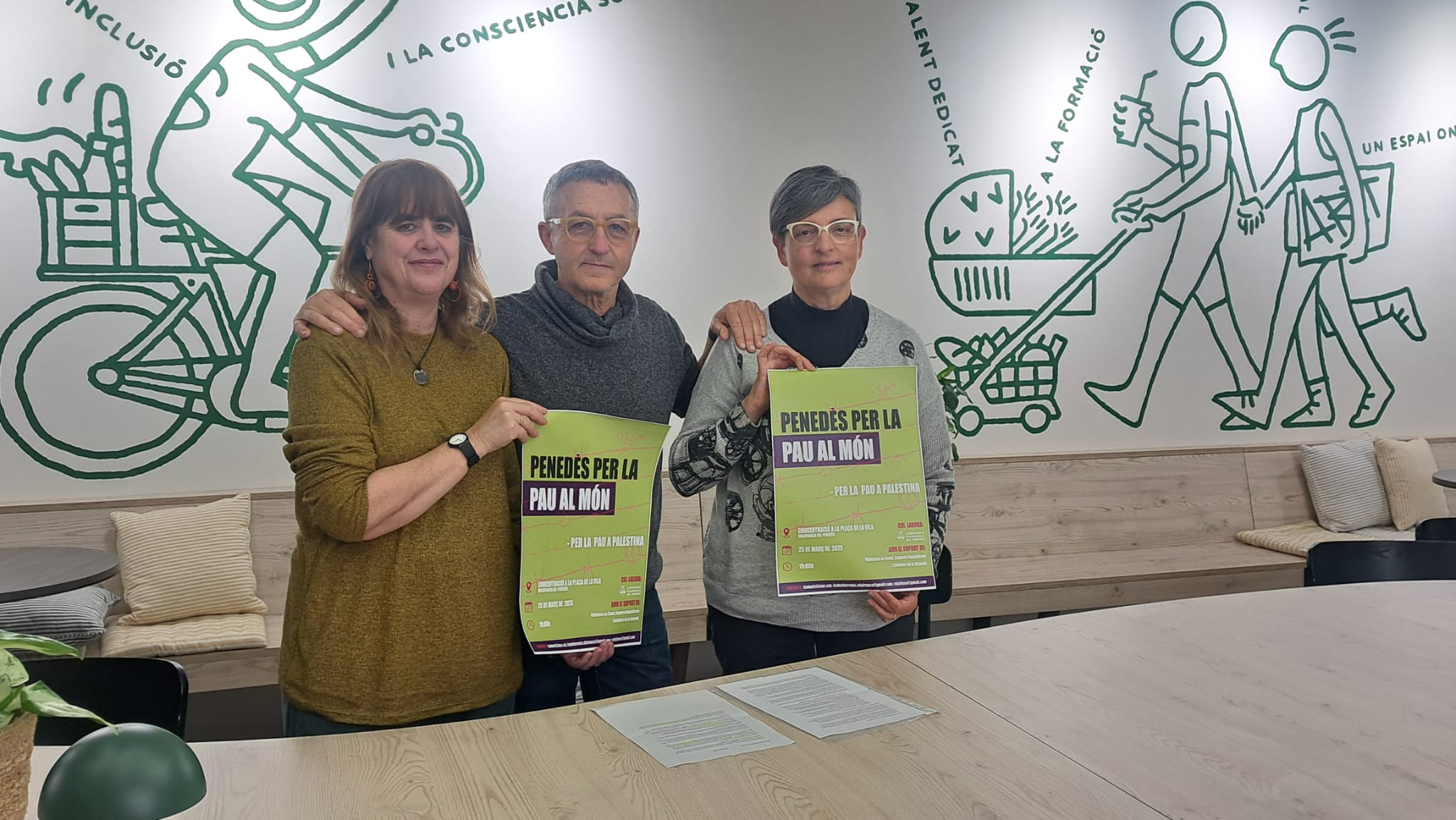 Marta Sabariz, Rafa Higueras i Isabel Torrents són el grup motor de l’entitat Penedès per la Pau al Món, que va començar a caminar fa unes setmanes i que ara ha anunciat que convocarà concentracions cada últim dimarts de mes a les set de la tarda a la plaça de la Vila per revifar la lluita per la pau.