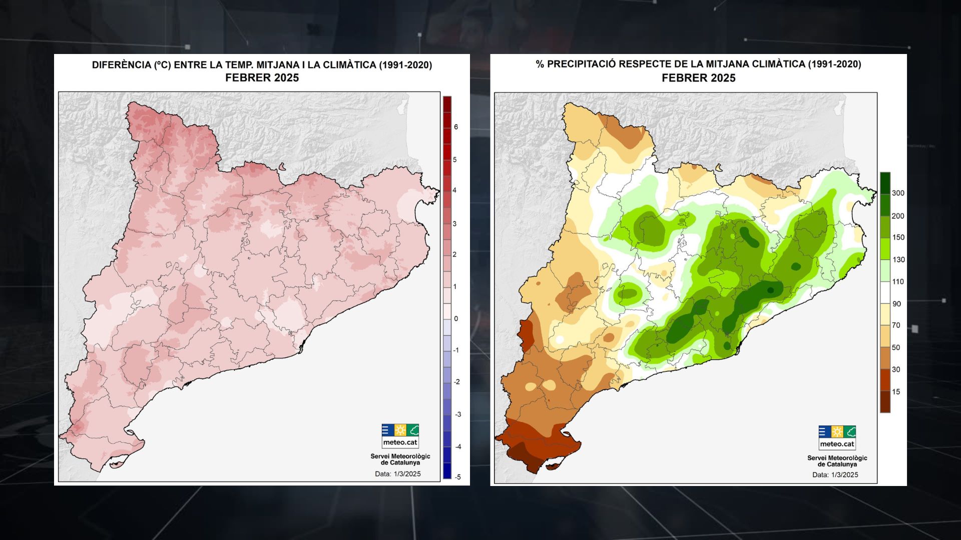 Amb el mes de febrer acabat, el Servei Meteorològic de Catalunya ha publicat el butlletí mensual del segon mes de l’any. El febrer ha estat un mes càlid al conjunt del país, tot i que no tant si el comparem amb els darrers anys. Pel que fa a les precipitacions, ha plogut de manera molt abundant al centre, litoral i prelitoral de Barcelona, amb registres molt superiors als habituals. També cal tenir en compte que el febrer és, de per si, un mes poc plujós. A l’Ebre i al Pirineu, la pluja ha estat minsa o molt minsa.