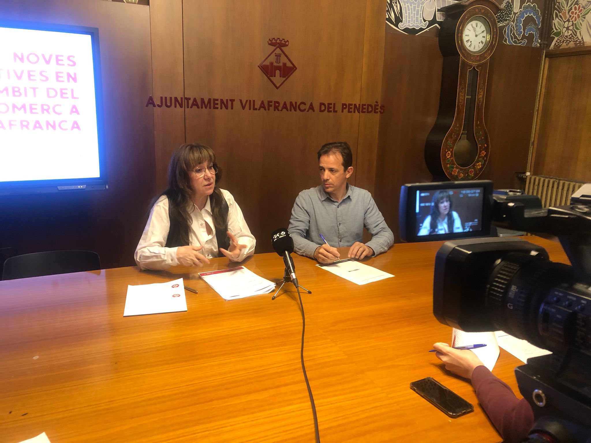 La regidora de Comerç de l’Ajuntament de Vilafranca, Lourdes Sànchez, acompanyada pel cap del Servei de Comerç, Salvador Ventura, ha presentat aquest dimecres en roda de premsa diverses iniciatives amb l’objectiu de «revitalitzar el teixit econòmic i millorar l’atractiu comercial» de la vila.