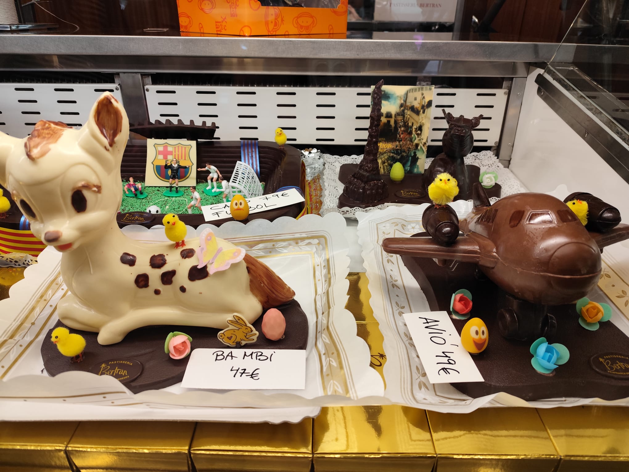 La pastisseria Bertran és un dels establiments que ofereix mones artesanes ja siguin de xocolata o de pastisseria. El pastisser Ramon Bertran explica què poden trobar aquests dies els seus clients i amb quin marge de temps s’estan fent les comandes.