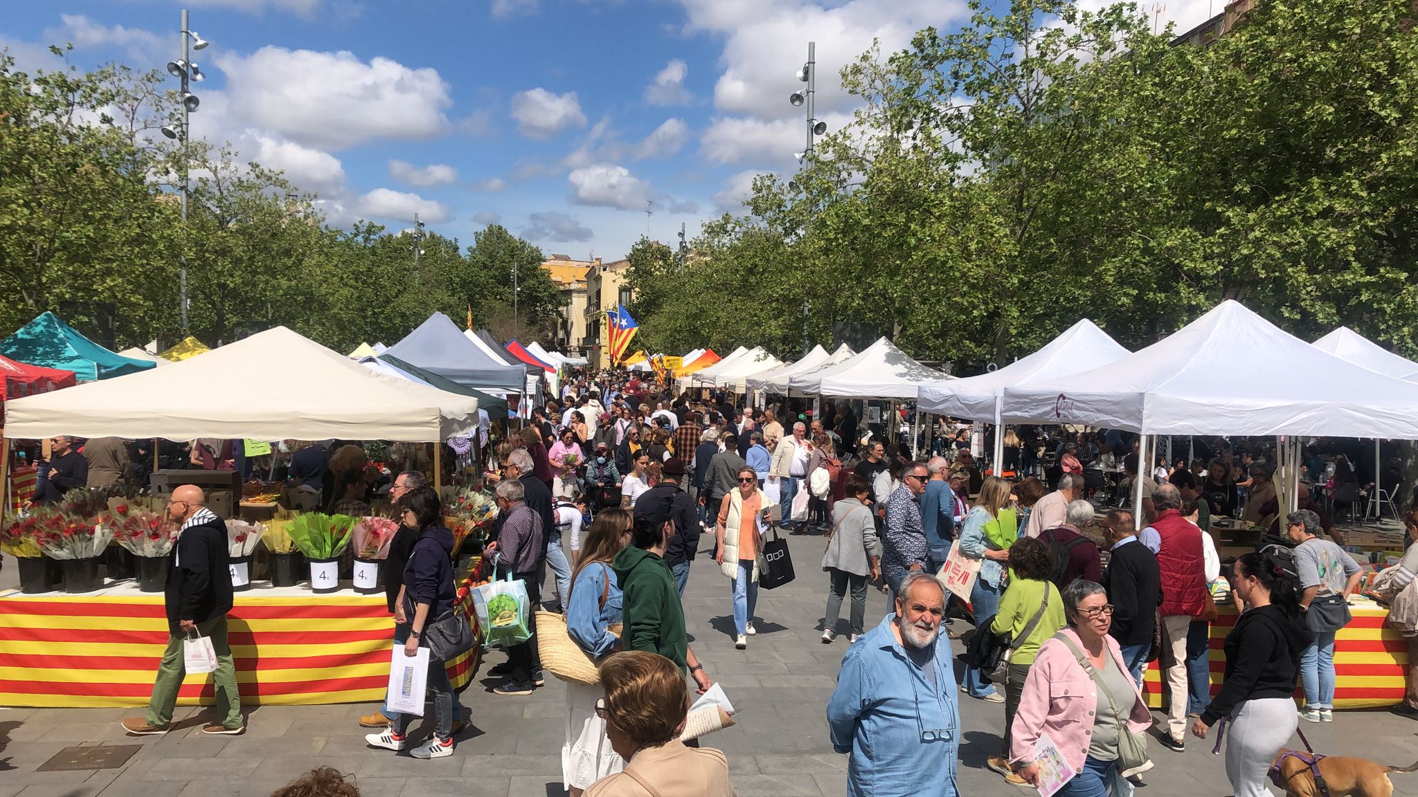 A banda de llibreries i floristeries trobem també la part més social amb parades d’entitats, el mercat d’artesania i els autors locals.