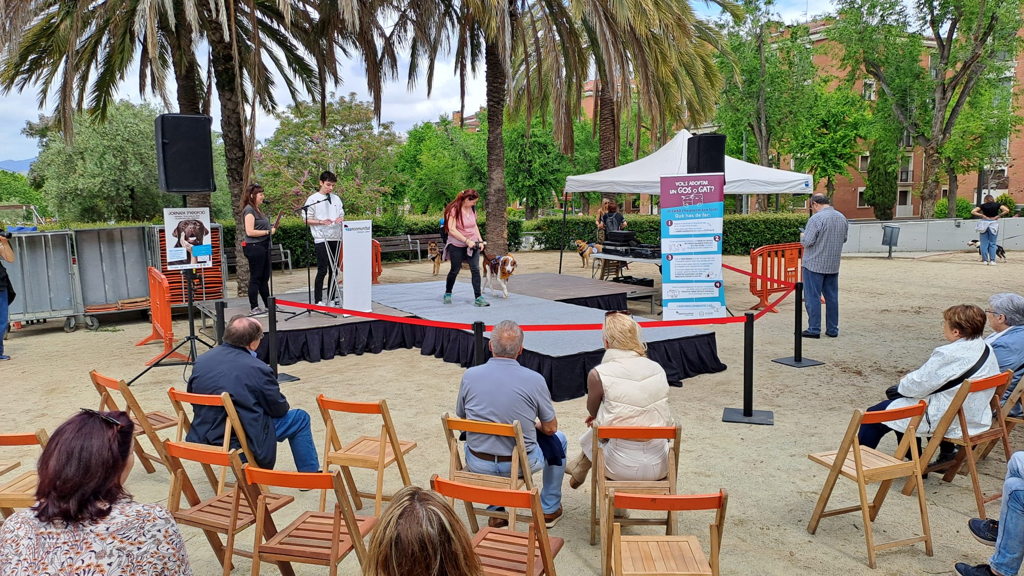 Durant l’acte diversos gossos del CAAD es presentaven al públic acompanyats pels voluntaris i voluntàries de l’associació Voluntacaad. Els animals van desfilar per poder ser coneguts de prop per les persones interessades, que tenien l’oportunitat de preguntar sobre el seu comportament i necessitats. La responsable d’adopcions de gossos del CAAD, Ester Blanch, parlava d’aquest nou format.
