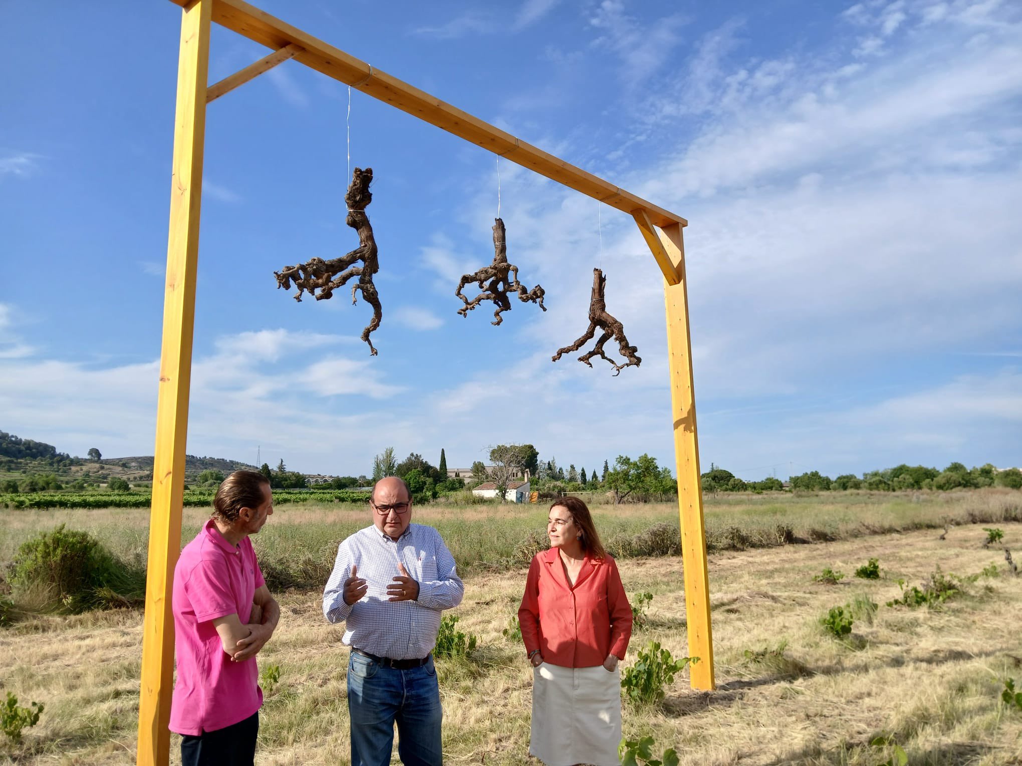 Aquest passat divendres va inaugurar-se a Vilafranca una nova escultura del poeta penedesenc Santi Borrell. La instal·lació artística, que pren el nom de Ceps que cauen del cel, reprèn la idea d’una peça anterior que es va presentar anys enrere a la Granada sota el nom Vinyes mortes vora el cel. Si aquella obra simbolitzava el patiment de la pagesia, aquesta nova proposta introdueix un bri d’esperança i origen.