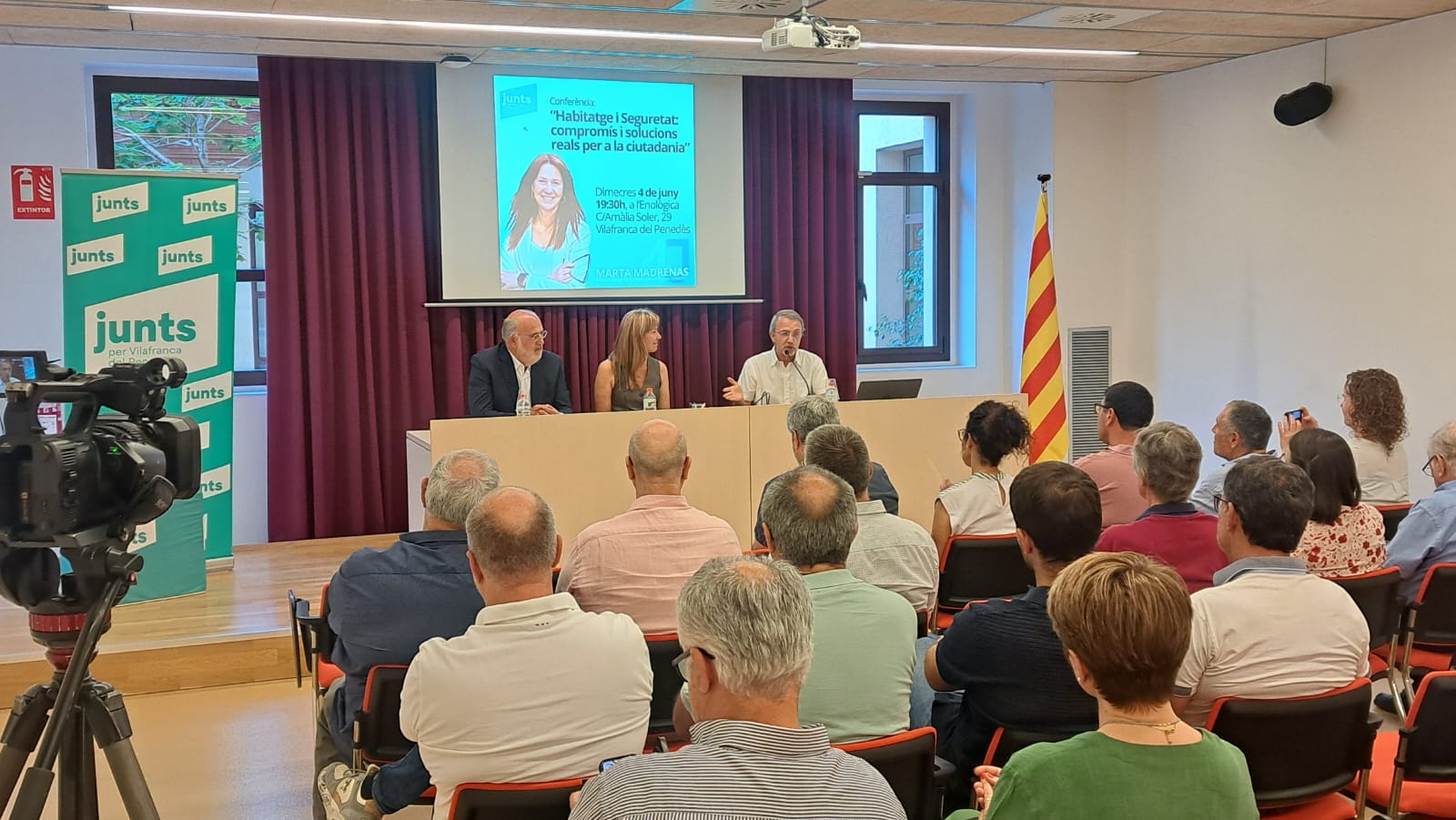 Junts Vilafranca va organitzar aquest dimecres a la tarda una xerrada sobre habitatge i seguretat a càrrec de la diputada de Junts per Catalunya al Congrés Marta Madrenas, que estava acompanyada del senador Eduard Pujol i del portaveu de Junts Vilafranca Aureli Ruiz. Durant l’acte Madrenas va abordar qüestions com la multireincidència delictiva, les ocupacions i la crisi en l’accés a l’habitatge, explicant les propostes que el partit ha portat a Madrid.
