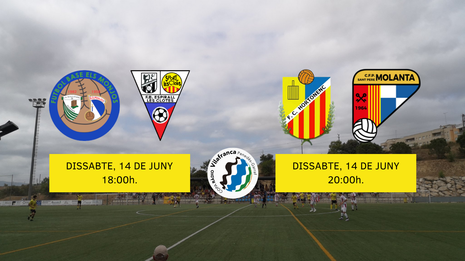 Clou una emocionant primera jornada de la Copa Ràdio Vilafranca i ja tenim semifinalistes! Aquest dissabte, 14 de juny els dos finalistes sortiràn dels partits. Monjos – Espirall , a les 18:00h.; i Hortonenc – Molanta,