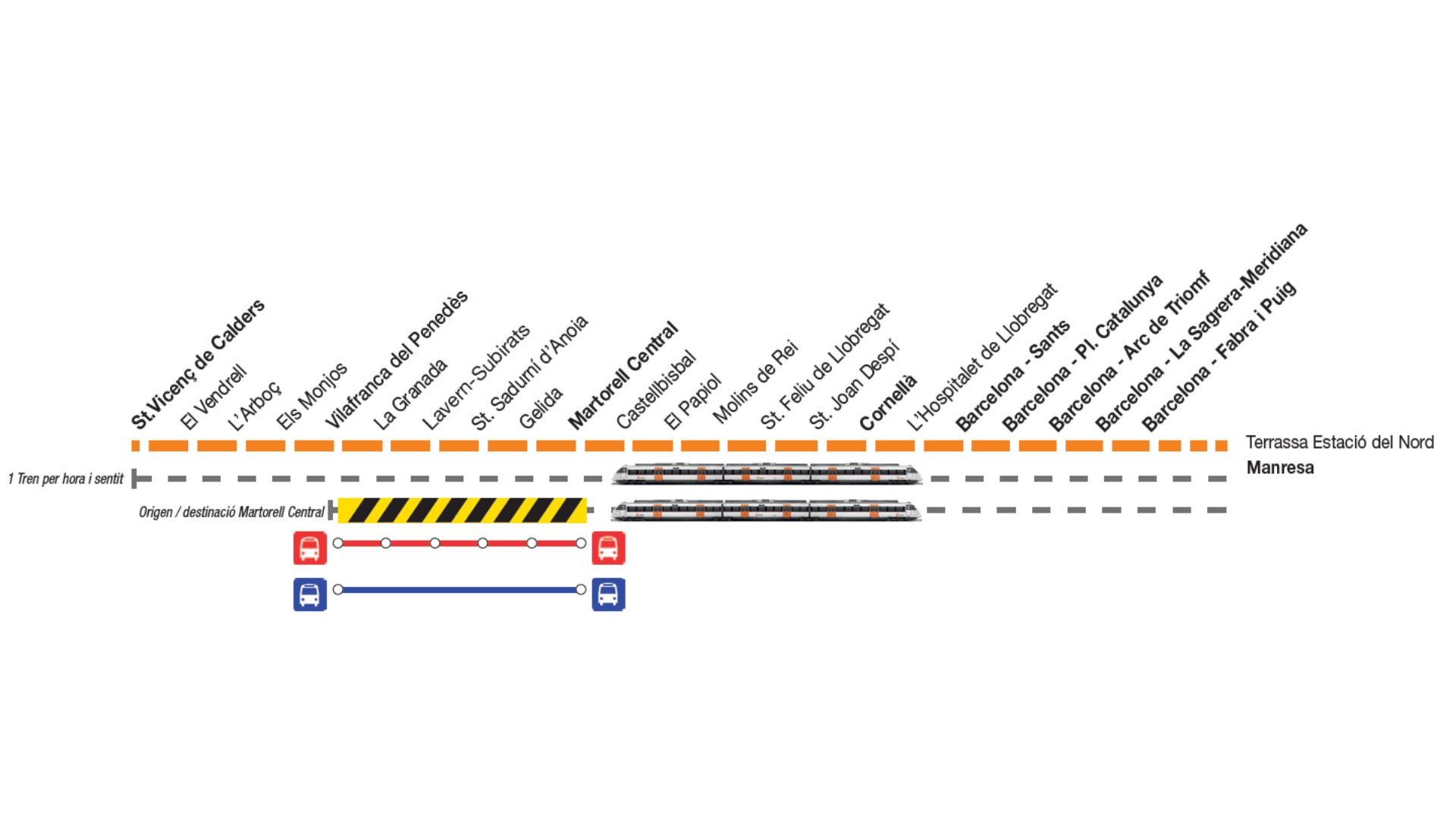 Renfe ha programat 277 circulacions per carretera cada setmana durant la reducció de les circulacions ferroviàries entre les estacions de Vilafranca i Martorell Central.