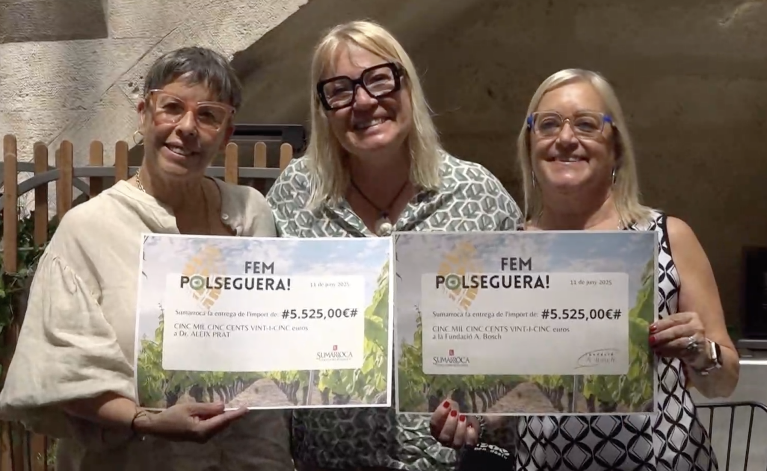 Aquest dimecres el Vinseum ha acollit l’acte de lliurament dels talons amb la recaptació de la caminada que es va fer el passat 27 d’abril, entre vinyes, una iniciativa organitzada per Bodegues Sumarroca, amb el suport de la Fundació Bosch. Enguany es van recaptar 11.050 euros, que es destinaran, en un 50% a projectes de la Fundació Bosch i a la recerca sobre el càncer metastàsic de mama.
