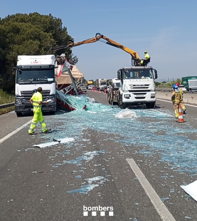 A l’accident hi ha un camió carregat de vidre que ha quedat inestable i les tasques de neteja de la via han complicat la circulació.