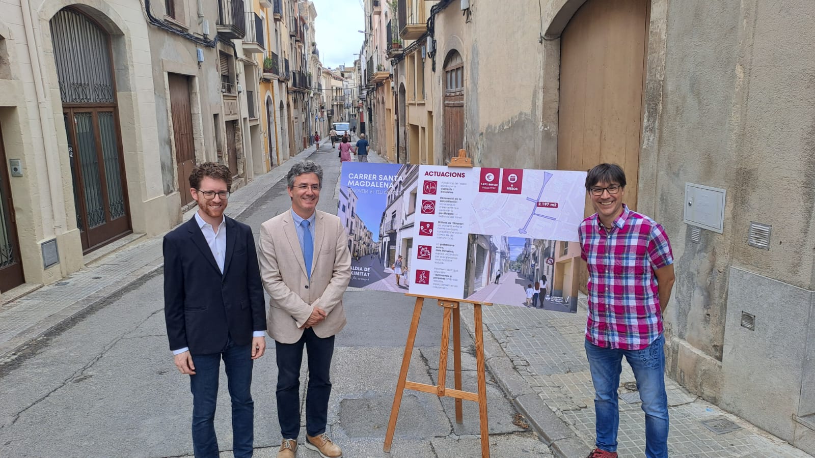 A banda de les millores per al veïnat, Medialdea remarcava l’eix vertebrador que es generarà entre el carrer de Santa Magdalena i el carrer de Sant Pere, tot millorant i prioritzant la circulació de vianants i bicicletes.