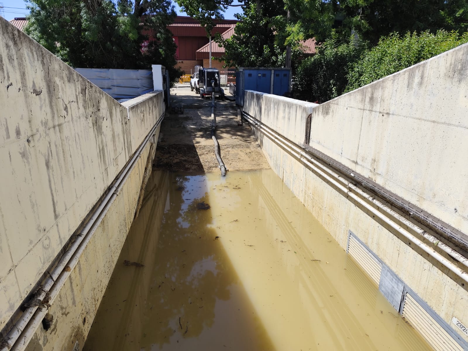 Continuen les tasques per buidar l’aigua del soterrani del Complex Aquàtic