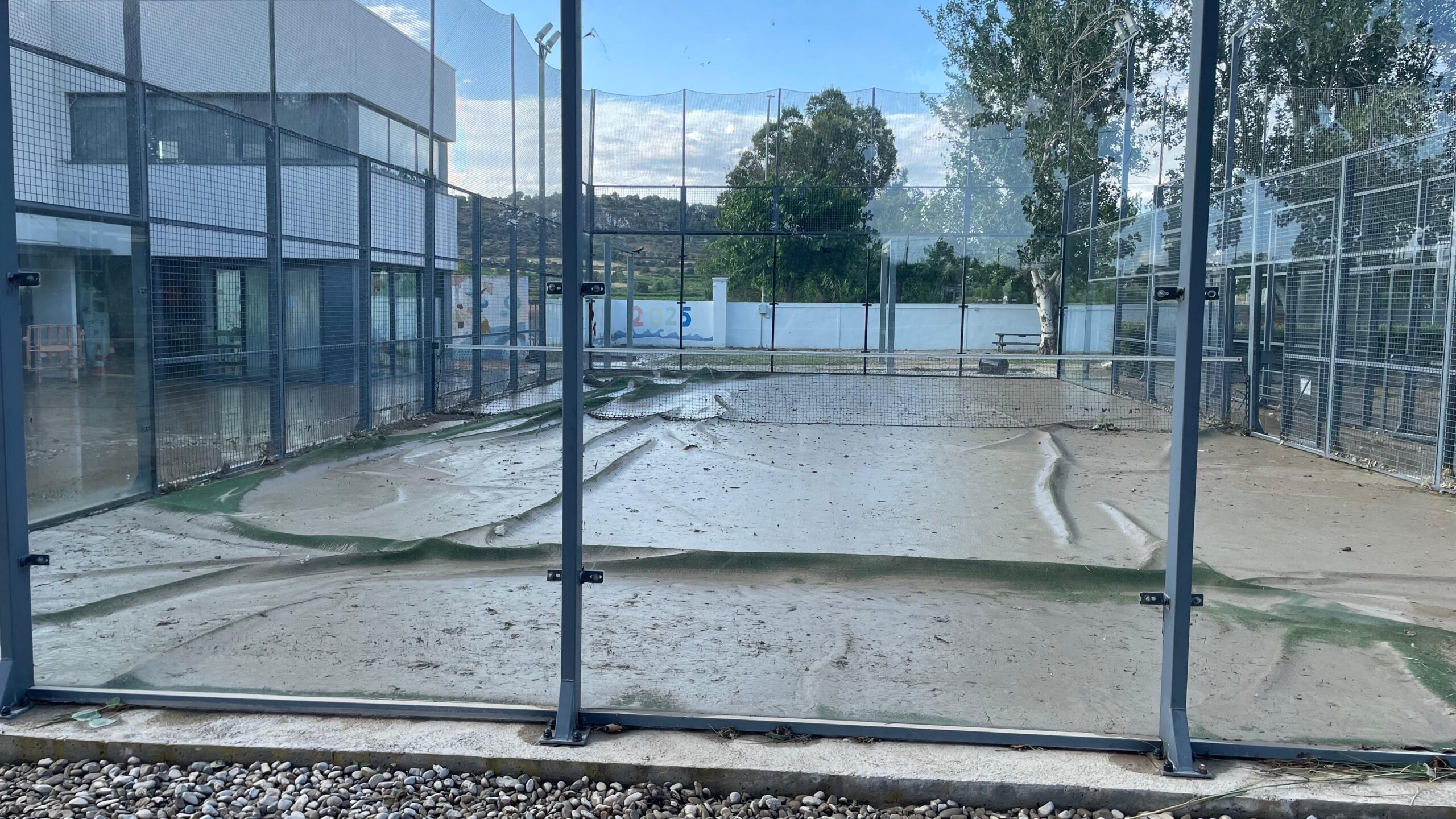 El mur exterior ha cedit, part de les instal·lacions han quedat inundades i les pistes de pàdel han quedat malmeses.