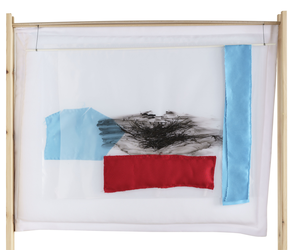 ‘Històries a l’Oest del Japó’ presenta un treball pictòric que explora la combinació de pintura i collage sobre materials com paper de seda, hule, cotó, roba i plàstic, i que es presenta ara en una versió ampliada i revisada, després de la seva primera mostra el 2023 a Vilanova i la Geltrú.