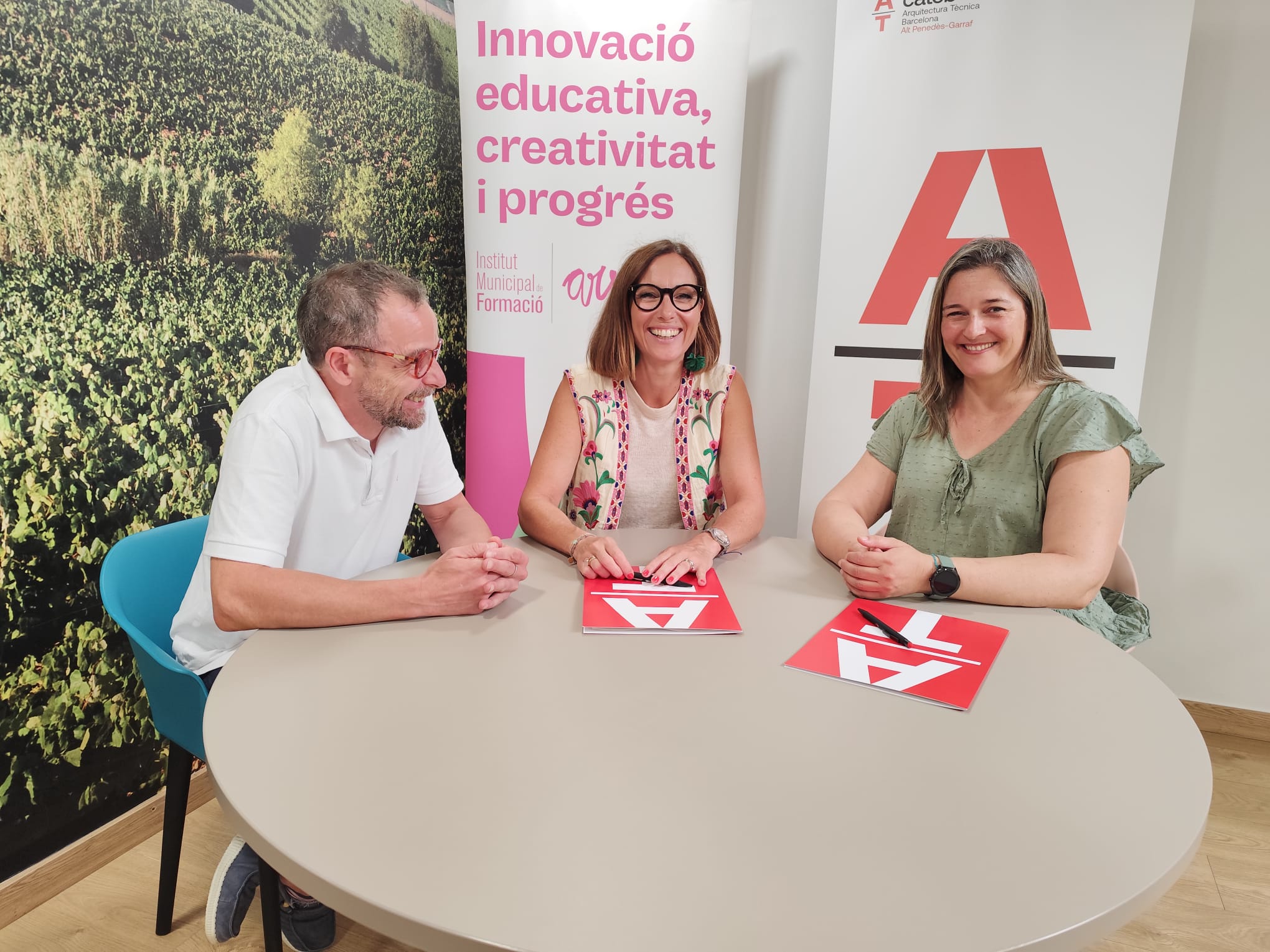 L’Institut Municipal de Formació – Arsenal i la delegació de l’Alt Penedès de l’Arquitectura Tècnica de Barcelona han signat, aquest dimecres, un conveni de col·laboració. Els principals objectius del conveni són establir el marc de col·laboració entre les parts en virtut del qual el CATEB cedeix l’ús de l’oficina de la planta baixa de la seva seu del carrer Cal Bolet 4 de Vilafranca per realitzar exposicions de peces d’art fetes per als alumnes d’aquest centre.