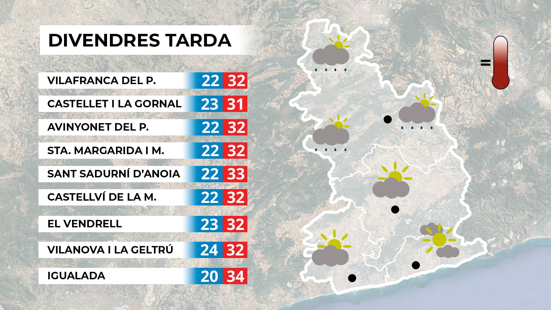Mapa de previsió per a divendres a la tarda.