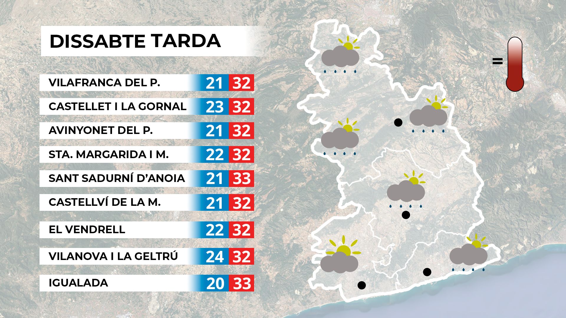 Mapa de previsió per a dissabte a la tarda.