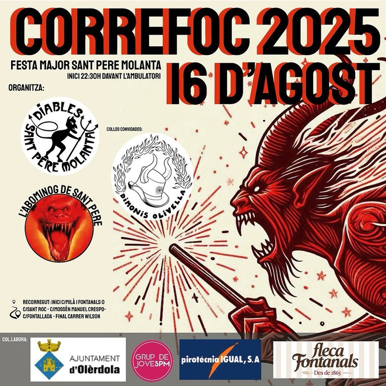 El correfoc començarà des del consultori mèdic, per seguir pels carrers Sant Roc, Manel Crespo, Font Tallada i acabar al carrer Wilson.