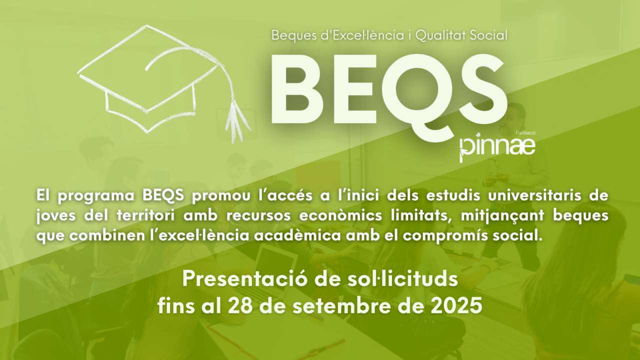 La Fundació Pinnae ha anunciat l’ampliació del període d’inscripció per a les Beques BEQS (Beques d’Excel·lència i Qualitat Social), que ara es podrà sol·licitar fins al 28 de setembre de 2025. La finalitat d’aquesta ampliació és donar cabuda als estudiants que es matricularan a la universitat durant el mes de setembre.