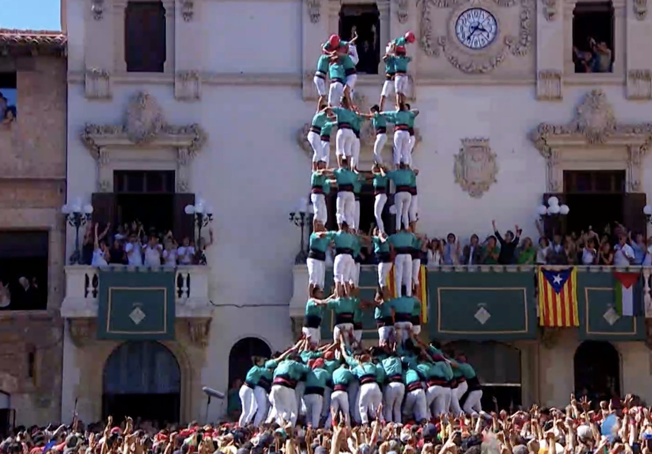 Per la seva banda els Verds, com era d’esperar, han tornat amb el 3d10, que també han donat per vàlid a la primera. Ha pujat mal encaixat i s’ha desmuntat de manera ràpida a l’alçada de quarts, perdent també la segona ronda. Les altres dues colles han premut l’accelerador i han anunciat el 3d10fm per la segona ronda. Primer l’ha plantat la Jove de Tarragona, el primer que han atacat enguany. L’han pujat a la primera, però l’han tirat avall a l’alçada de quarts, i s’ha trencat a la baixada.