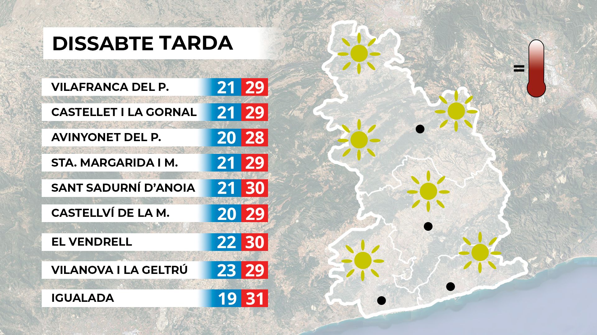 Diumenge, el temps serà més estable: hi haurà intervals de núvols però sense precipitacions, i les temperatures continuaran pujant, assolint valors propers o lleugerament superiors a la mitjana per a l’època.