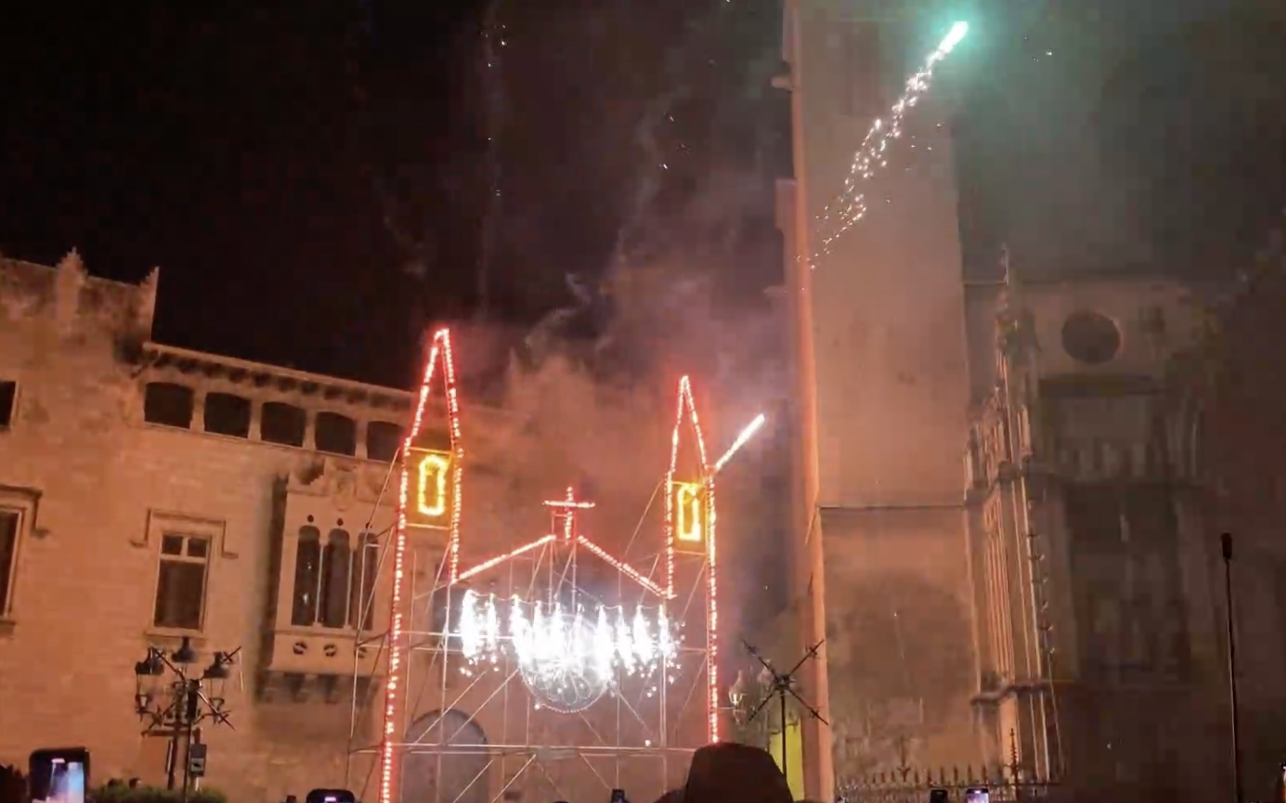 El Ball de Foc es clou amb un efecte pirotècnic de la silueta de la basílica de Santa Maria