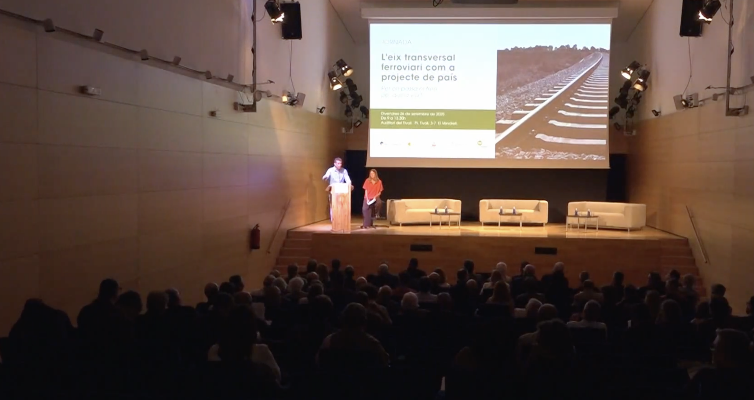 L’acte, organitzat per la Fundació Pro-Penedès, amb la col·laboració dels ajuntaments de Vilafranca i del Vendrell i de l’Associació Pro Vegueria Penedès, posa al centre del debat el futur del ferrocarril de mercaderies a Catalunya. Ho ha fet en un moment crucial per a la planificació d’infraestructures, a l’espera de la conclusió del corredor mediterrani, amb un increment important del transport de mercaderies per tren i amb molts problemes a la xarxa de transport de viatgers. L’Eix Transversal Ferroviari és una infraestructura ferroviària projectada entre Lleida i Girona, pensada principalment per al transport de mercaderies, tot i que també podran circular-hi trens de viatgers. Es va idear, dibuixar, preveure i aprovar ja fa quinze anys i compta fins i tot amb un Pla Director aprovat per la Generalitat l’any 2010.