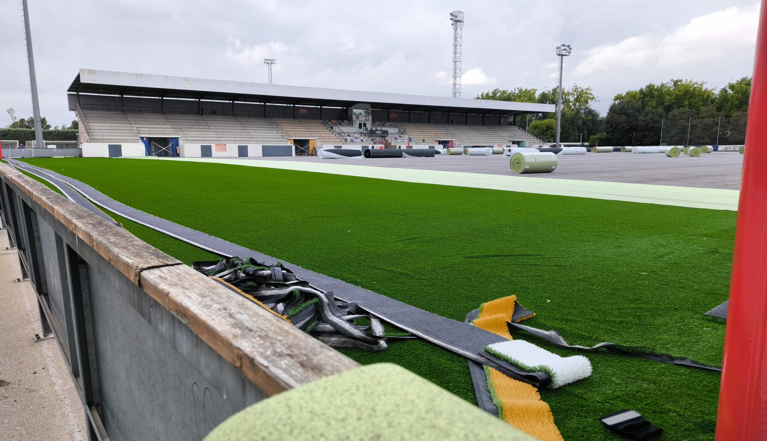 Aquesta setmana s’ha començat a instal·lar les grans lones de la nova gespa, que podria estar al 100% a finals de mes.