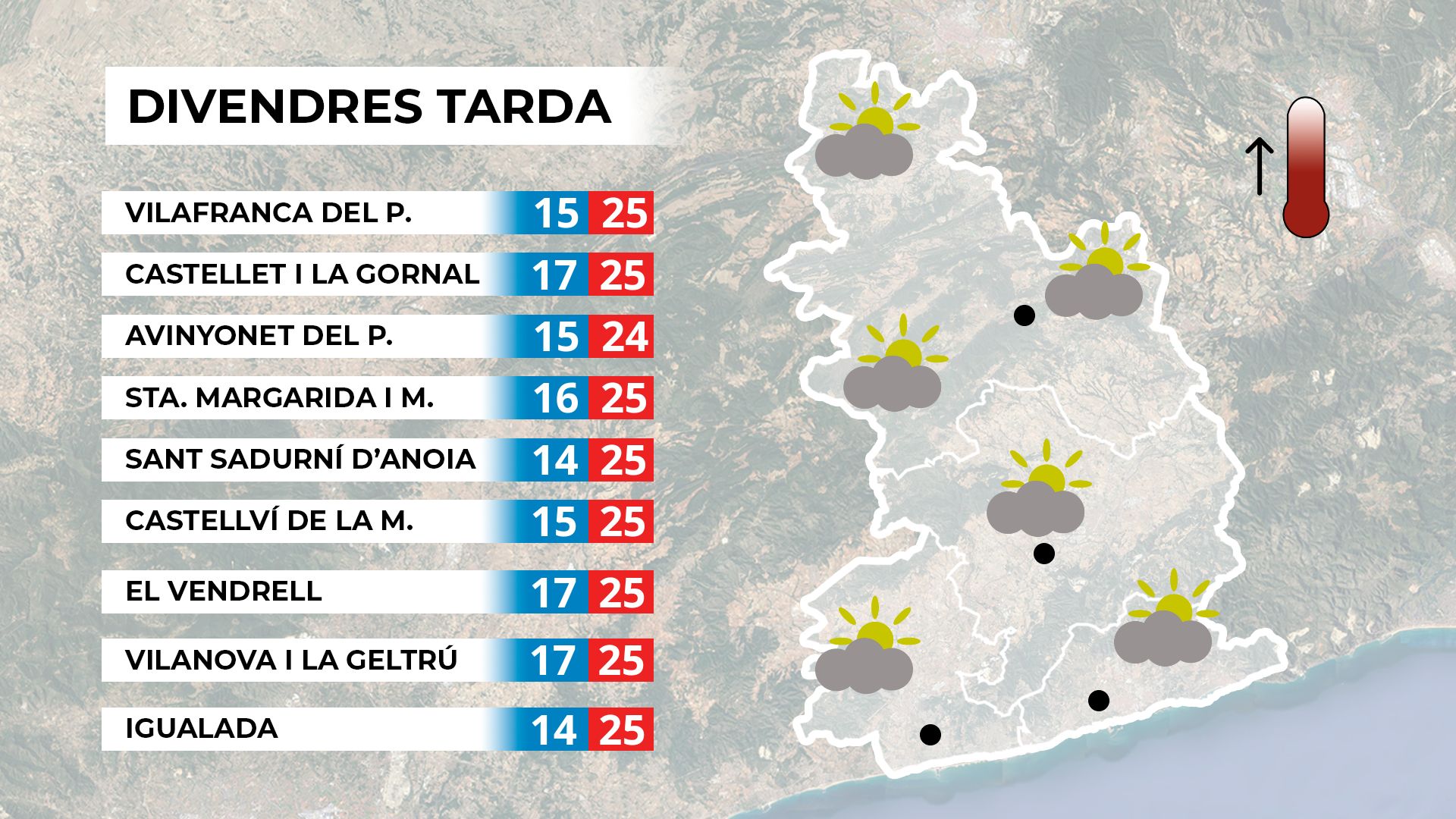 Mapa de previsió per a divendres a la tarda.