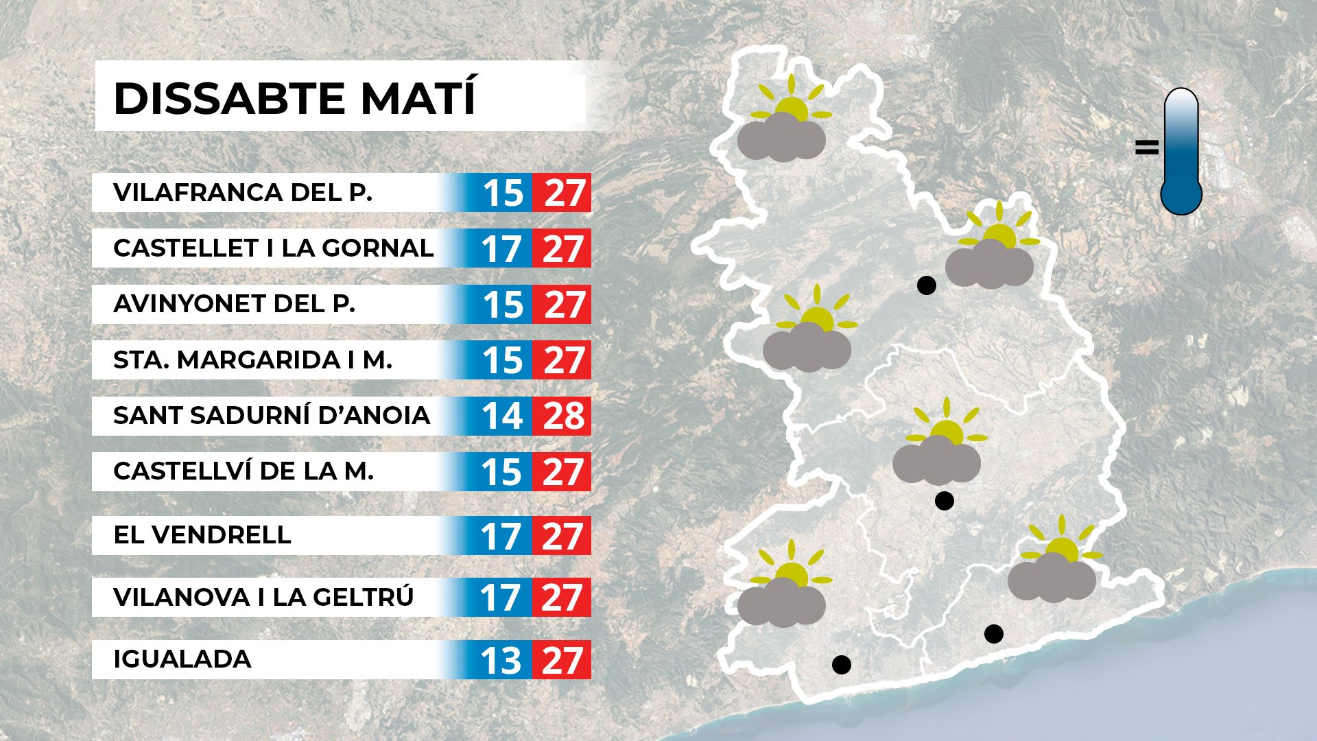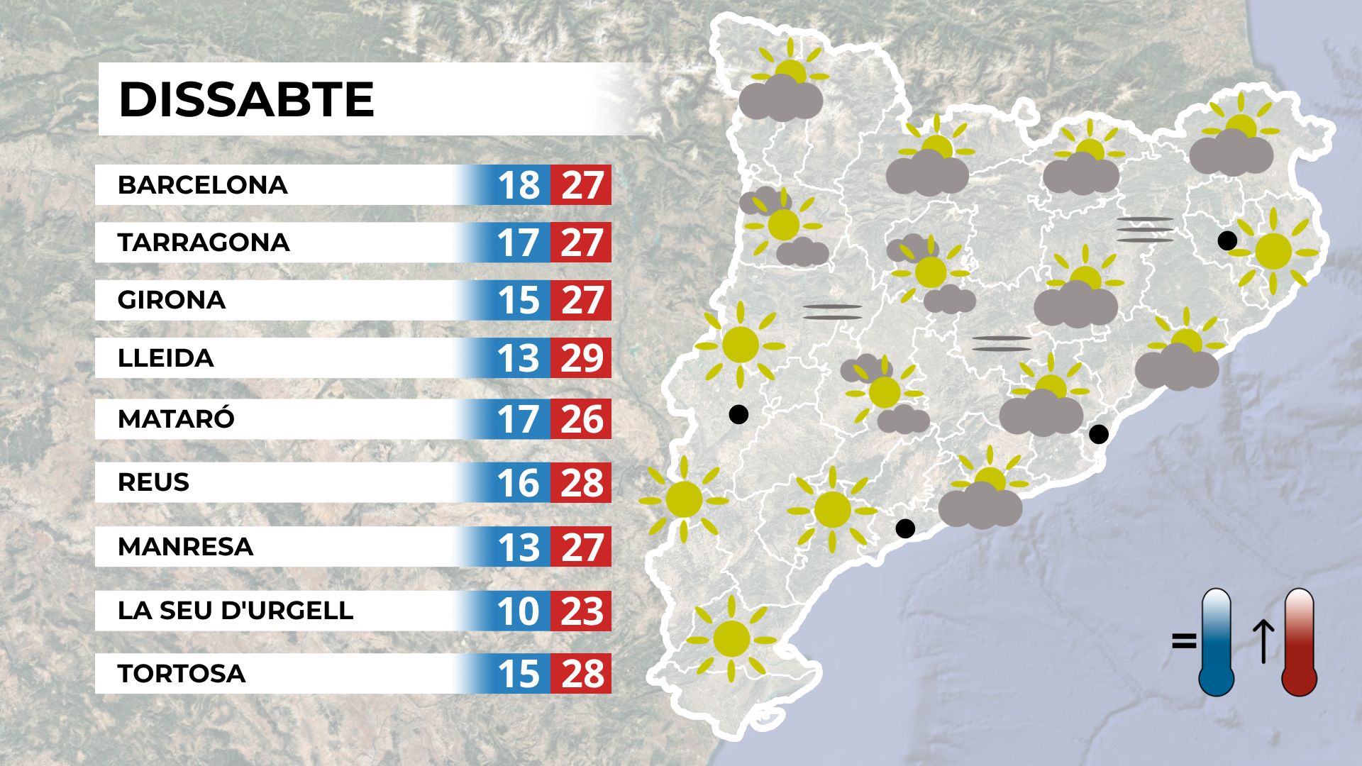 La matinada tornarà a ser fresca, amb mínimes per sota dels 15 °C. El matí es presentarà ennuvolat, però a mesura que avanci el dia el sol s’anirà imposant.