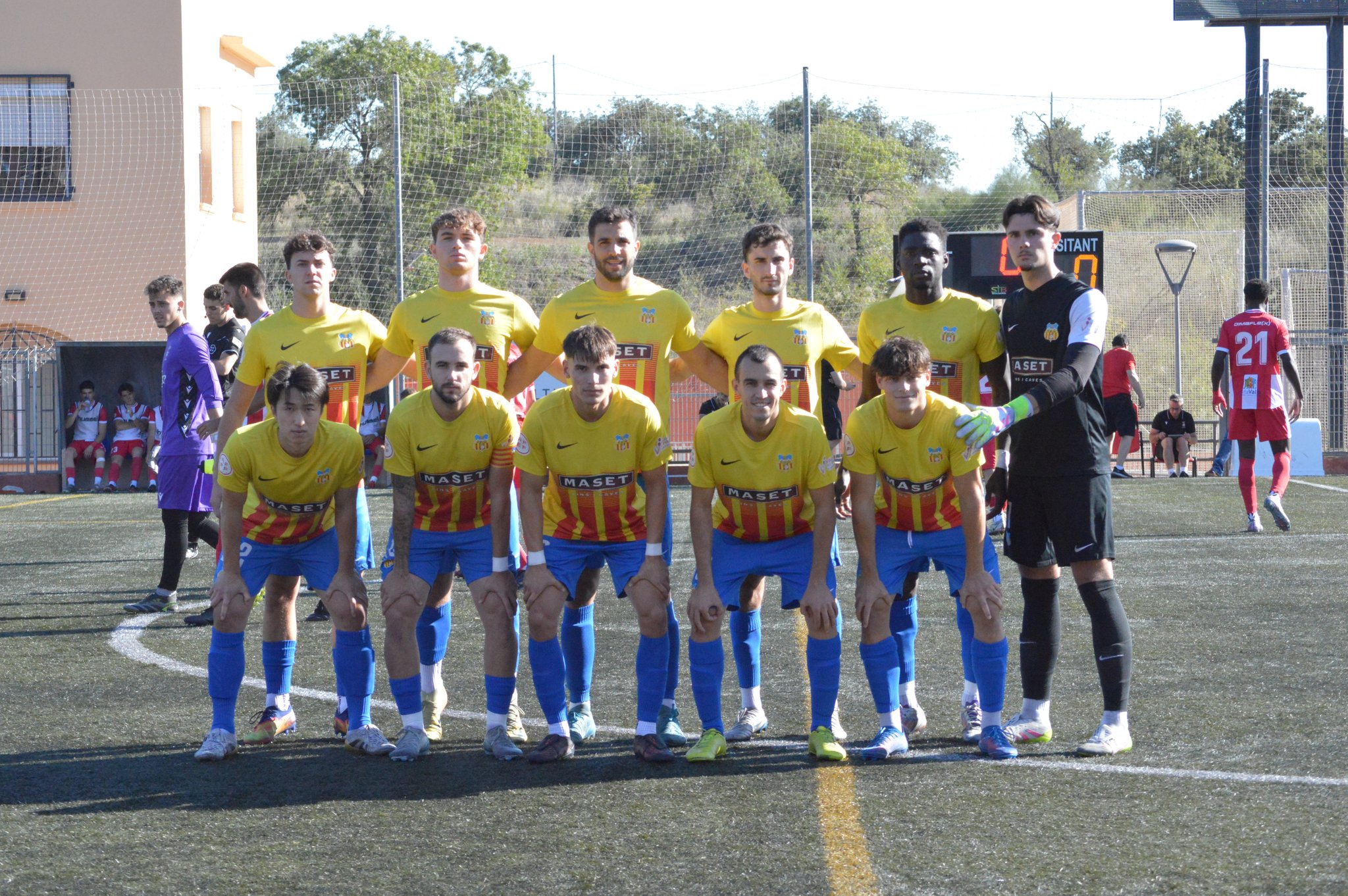 L’equip no es trobava incòmode amb pilota però no trobava el camí a porteria. Al segon temps va seguir la tònica, i en una falta lateral arribava el 2-0. Joan Domingo rematava sol al segon pal.
