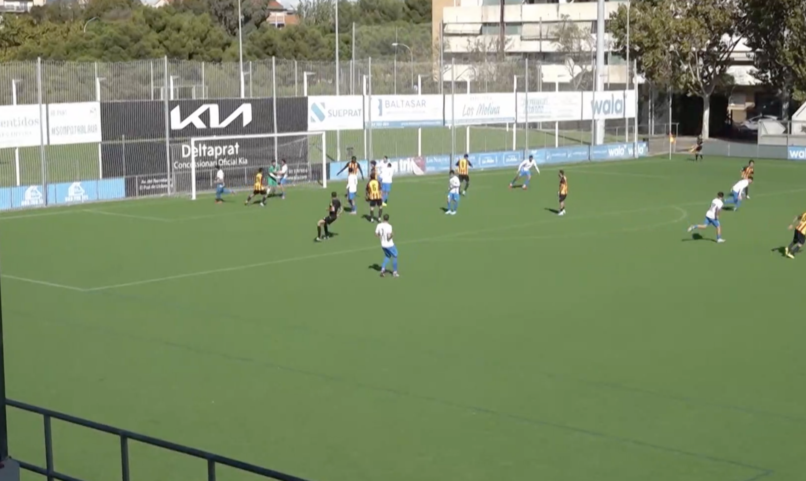 A partir de l’1-0 duel molt insípid. El Prat es va fer amb la pilota, sense cap intenció de voler més, i el Vilafranca no trobava la manera de crear ocasions a la contra. 25 minuts de no res, que van precedir el gol de l’empat de Marc Barrantes, fruit d’una pèrdua i després d’una bona passada d’Acedo. I quan semblava que els penedesencs reaccionaven, a un minut del descans, Abel Cortina castigava el seu ex-equip, tornant a avançar el Prat.