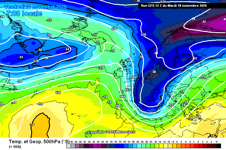 Mapa de temperatura a 500 hpa per a divendres al matí.