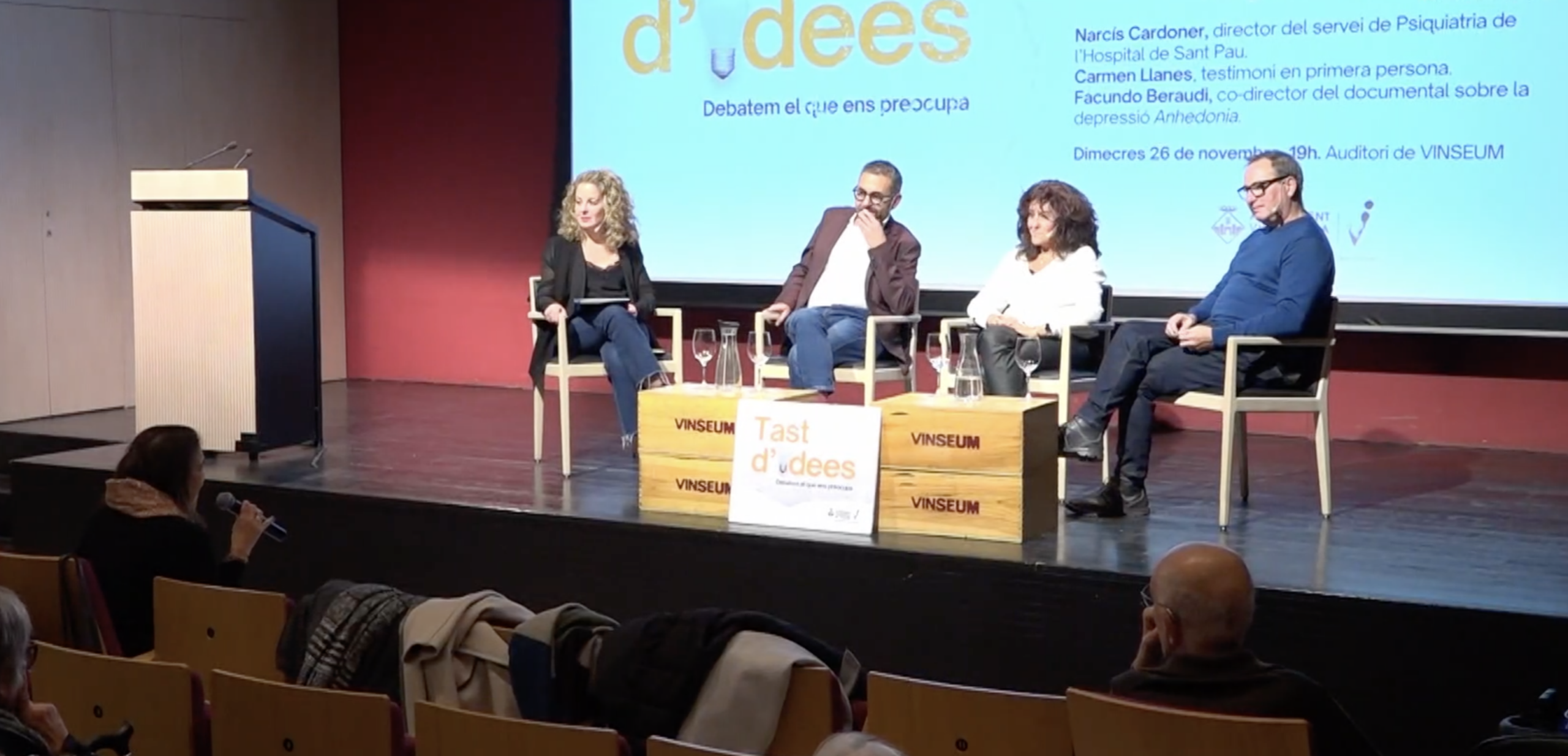 Sota el títol ‘Sabem reconèixer la depressió? Mirades d’un trastorn cada cop més intergeneracional” aquest dimecres tenia lloc el debat-col·loqui Tast d’Idees. En aquesta ocasió, els convidats eren Narcís Cardoner, director del servei de Psiquiatria de l’Hospital de Sant Pau, Facundo Beraudi, codirector del documental “Anhedonia” i Carmen Llanes, testimoni amb depressió del documental “Anhedonia”. Cardoner explicava que quan es dona una depressió no hi ha un únic factor.